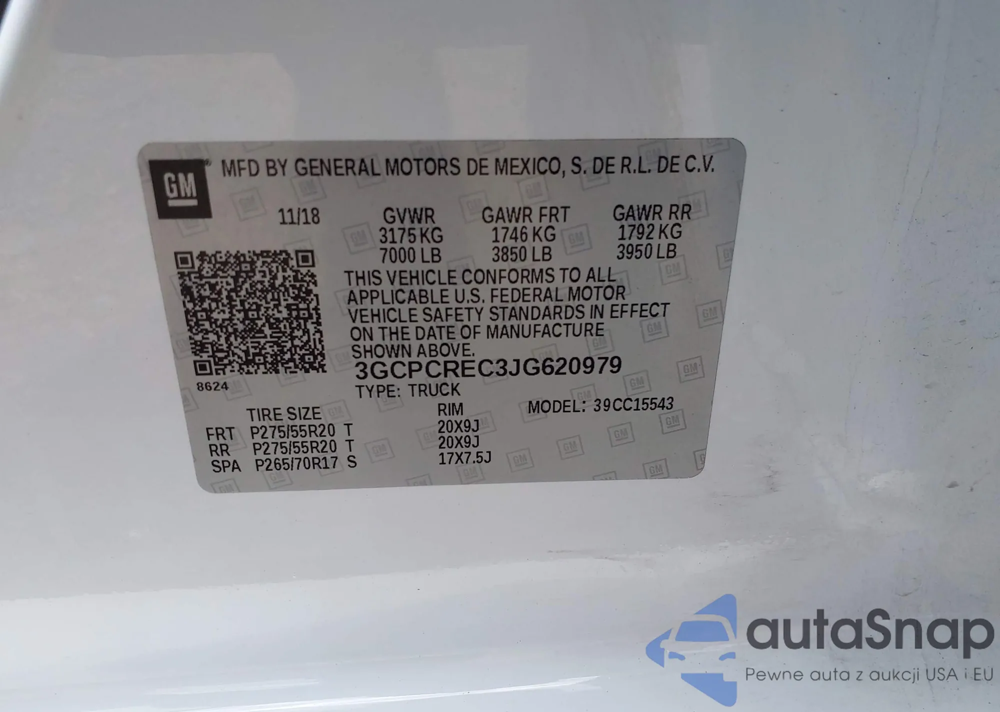 • VIN 3GCPCREC3JG620979