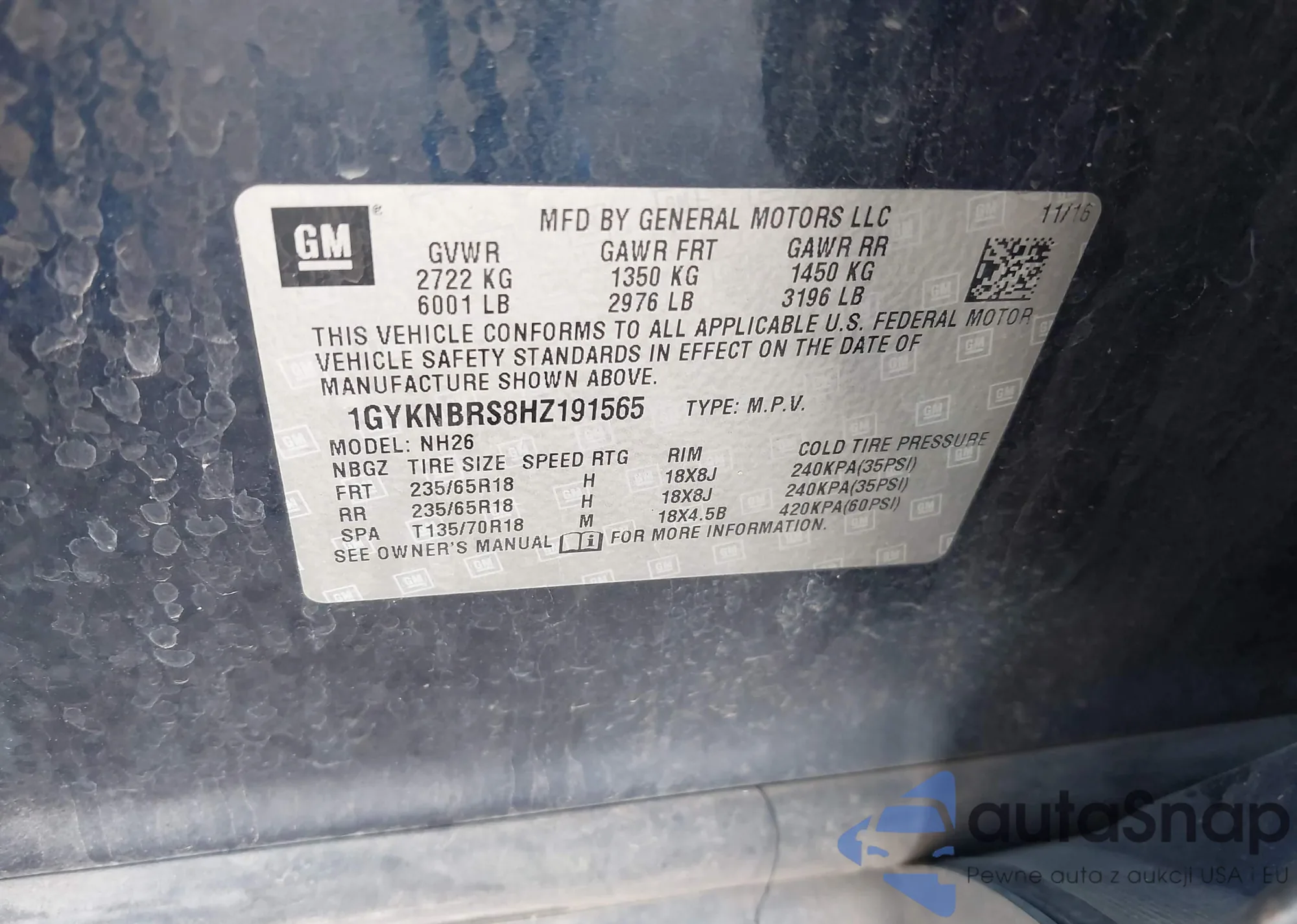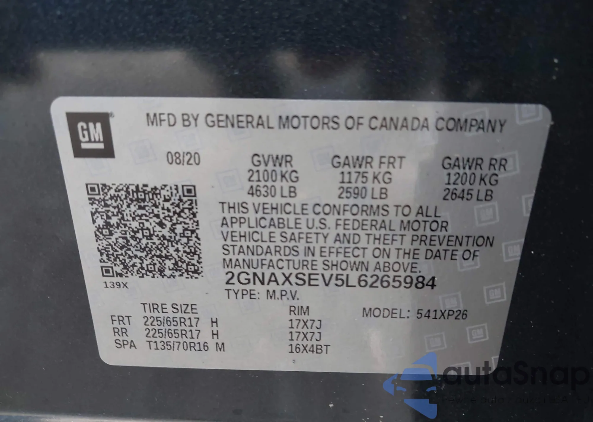 LOT: 43146869 VIN: 2GNAXSEV5L6265984