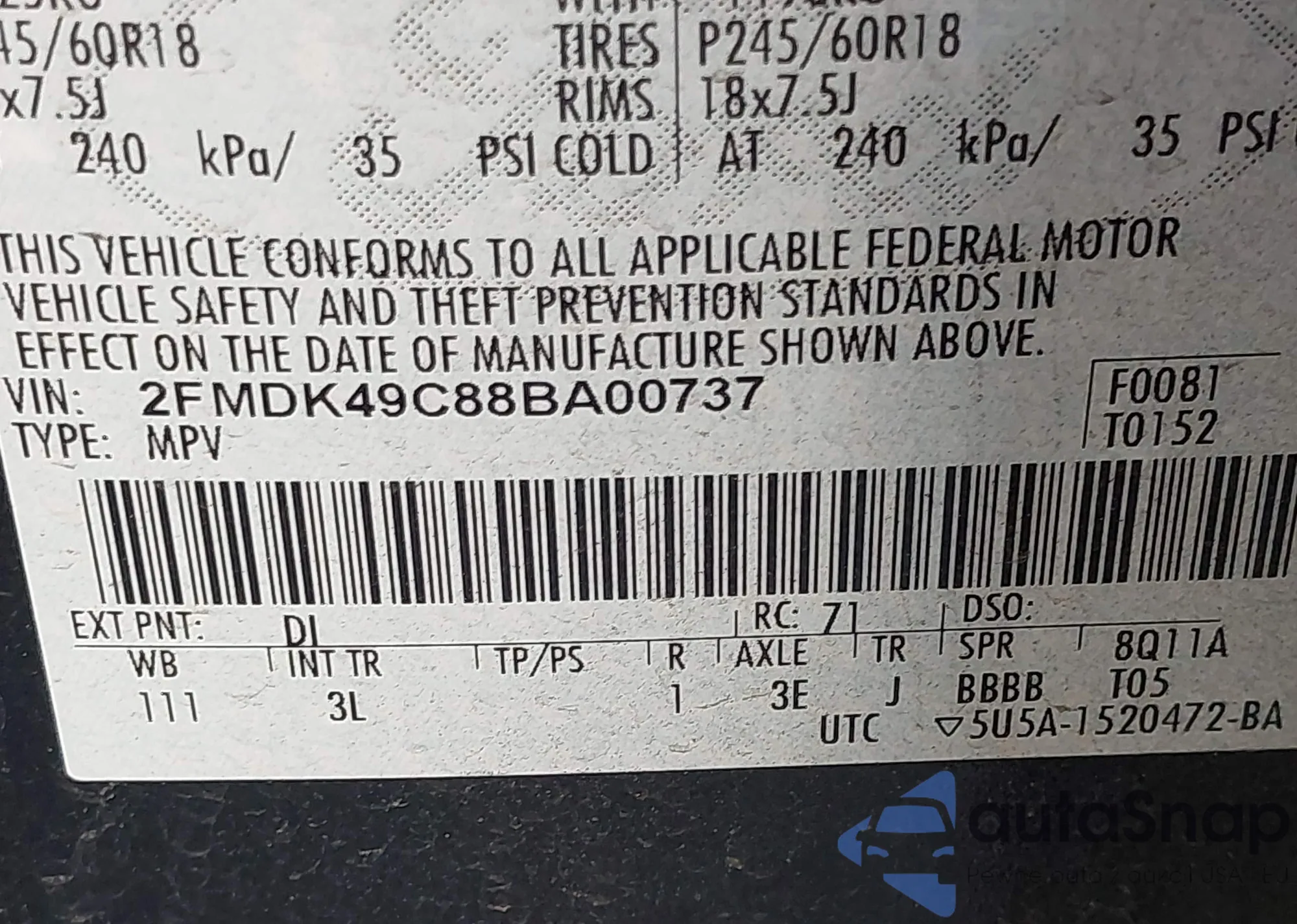LOT: 43522103 VIN: JM3KFBDM6J0315975