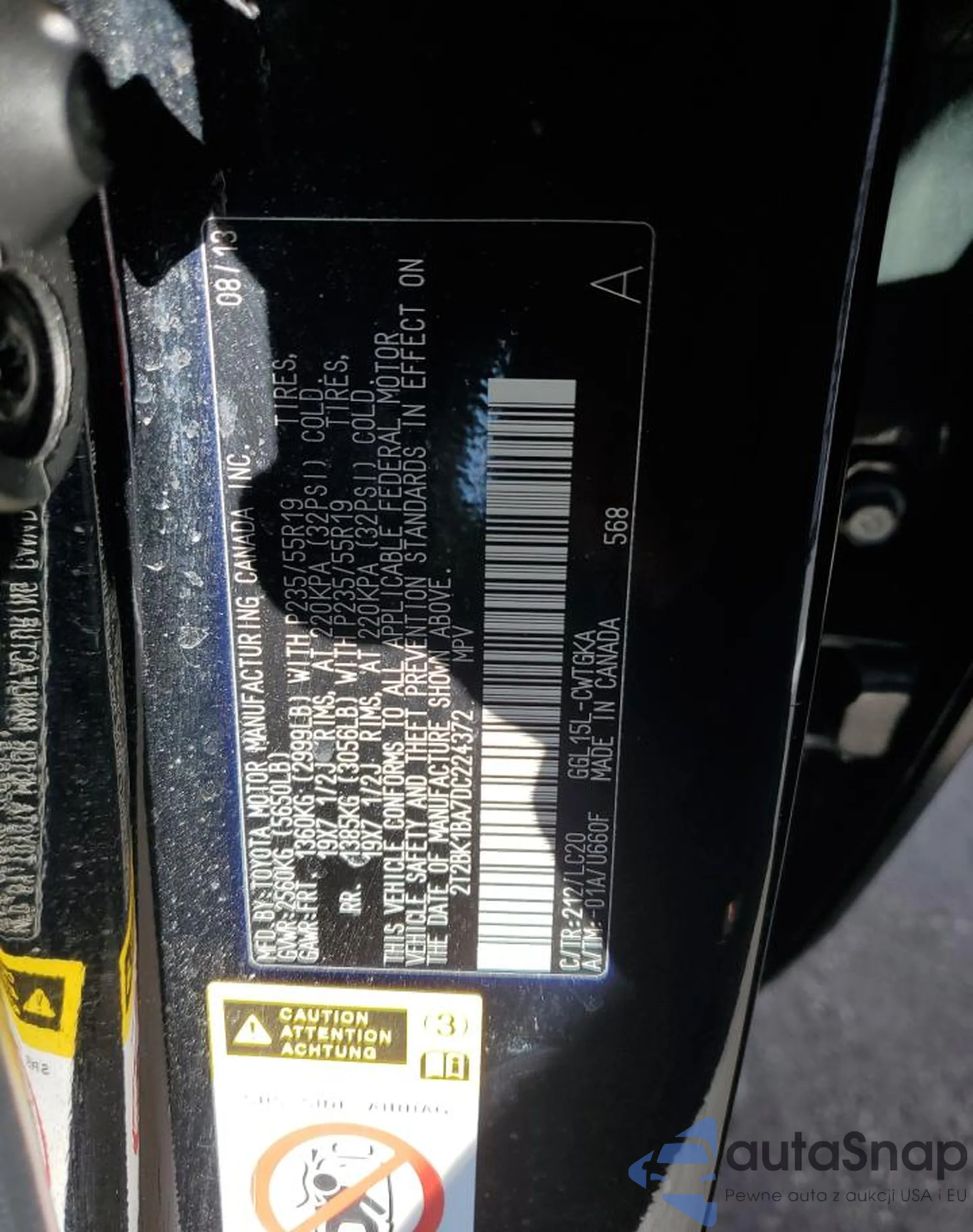 • VIN 2T2BK1BA7DC224372