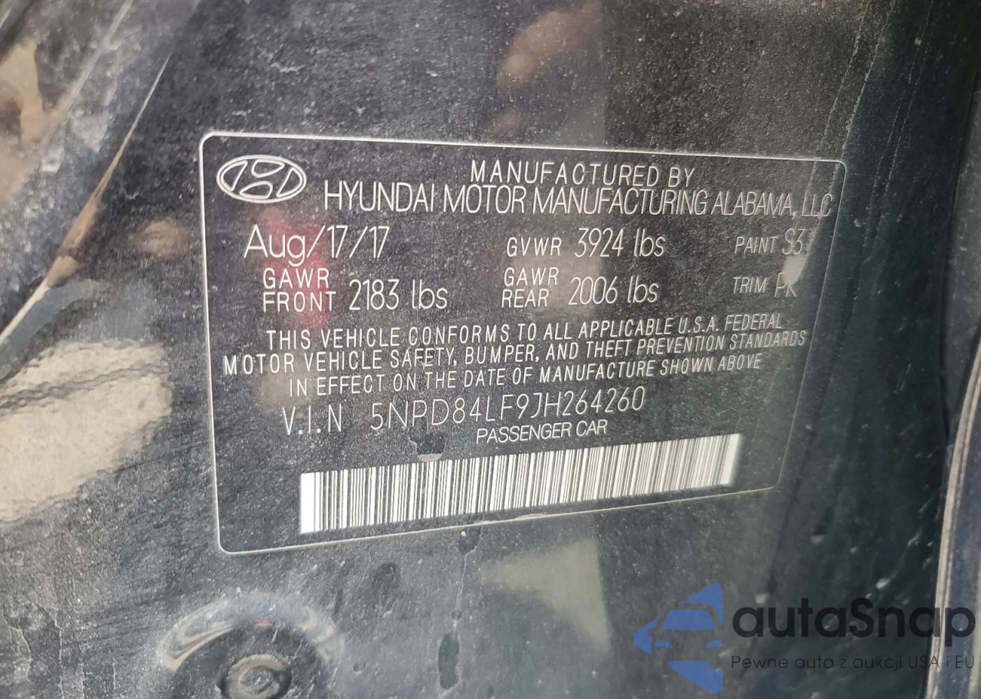 • VIN KM8SR4HF8HU209503