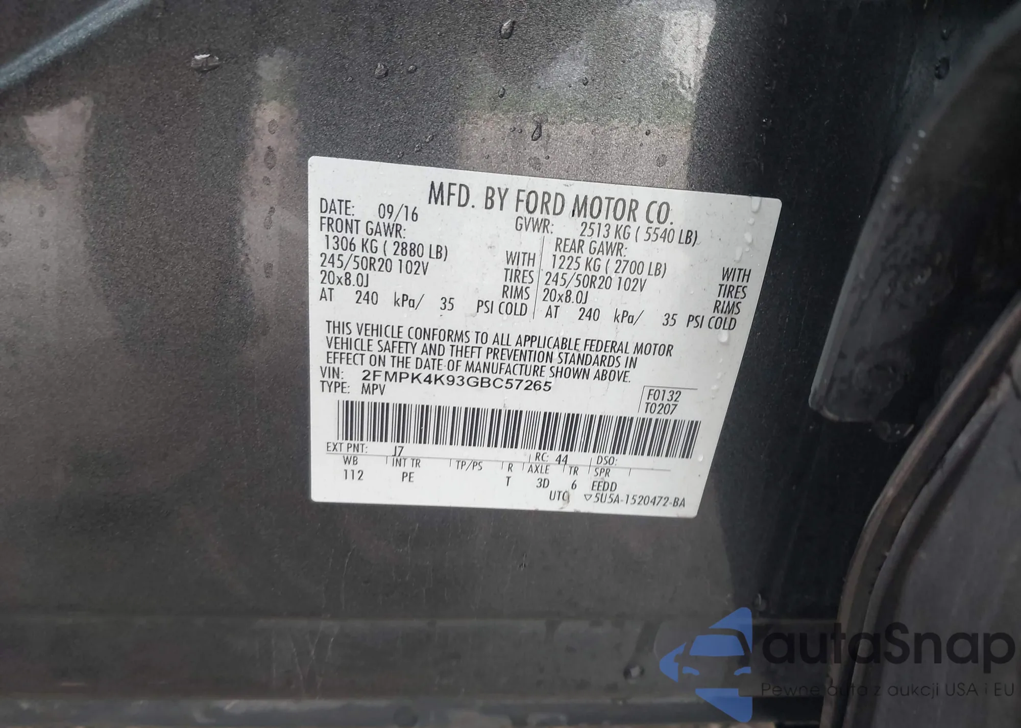 • VIN 2FMPK4K93GBC57265