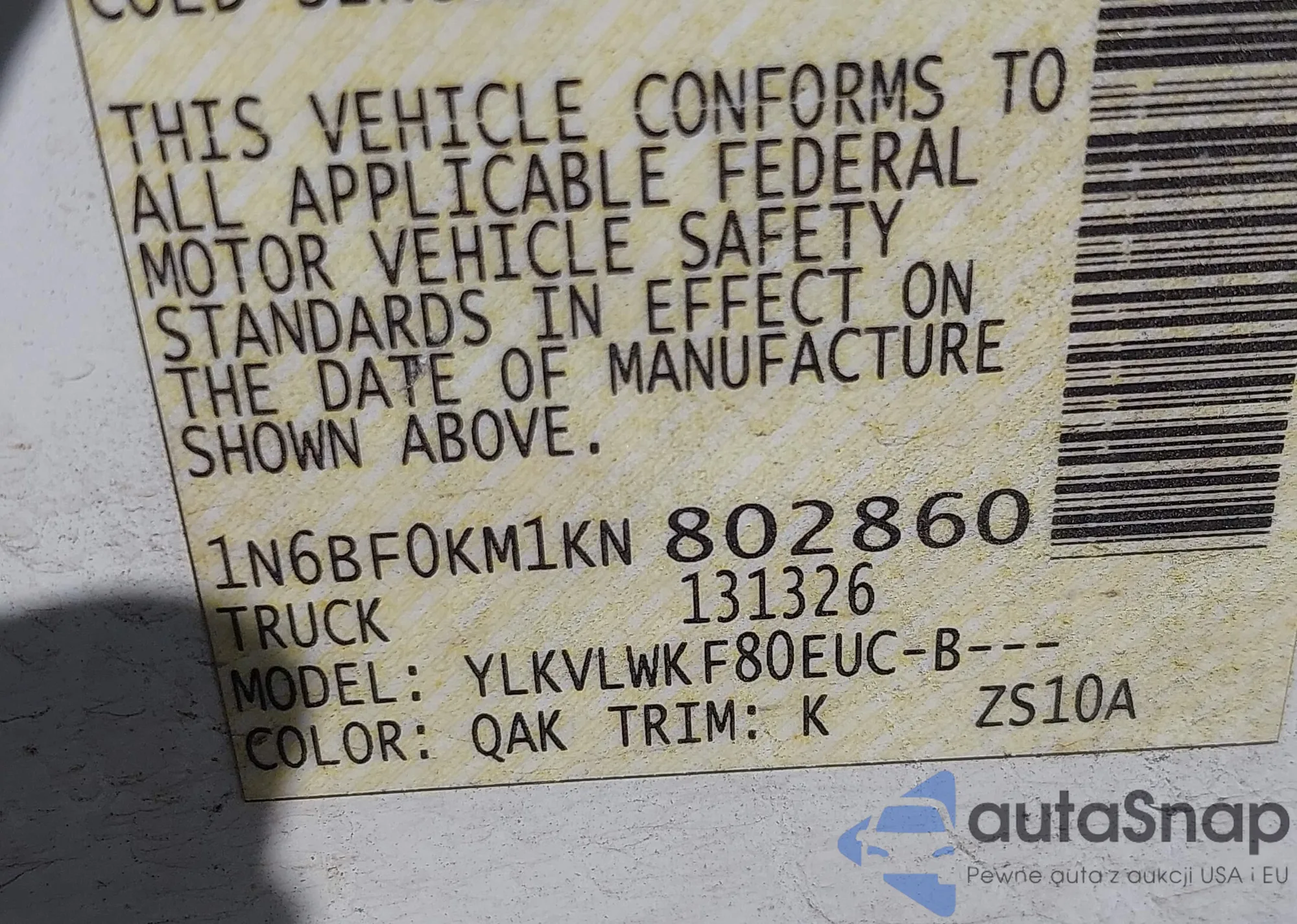 • VIN 1N6BF0KM1KN802860
