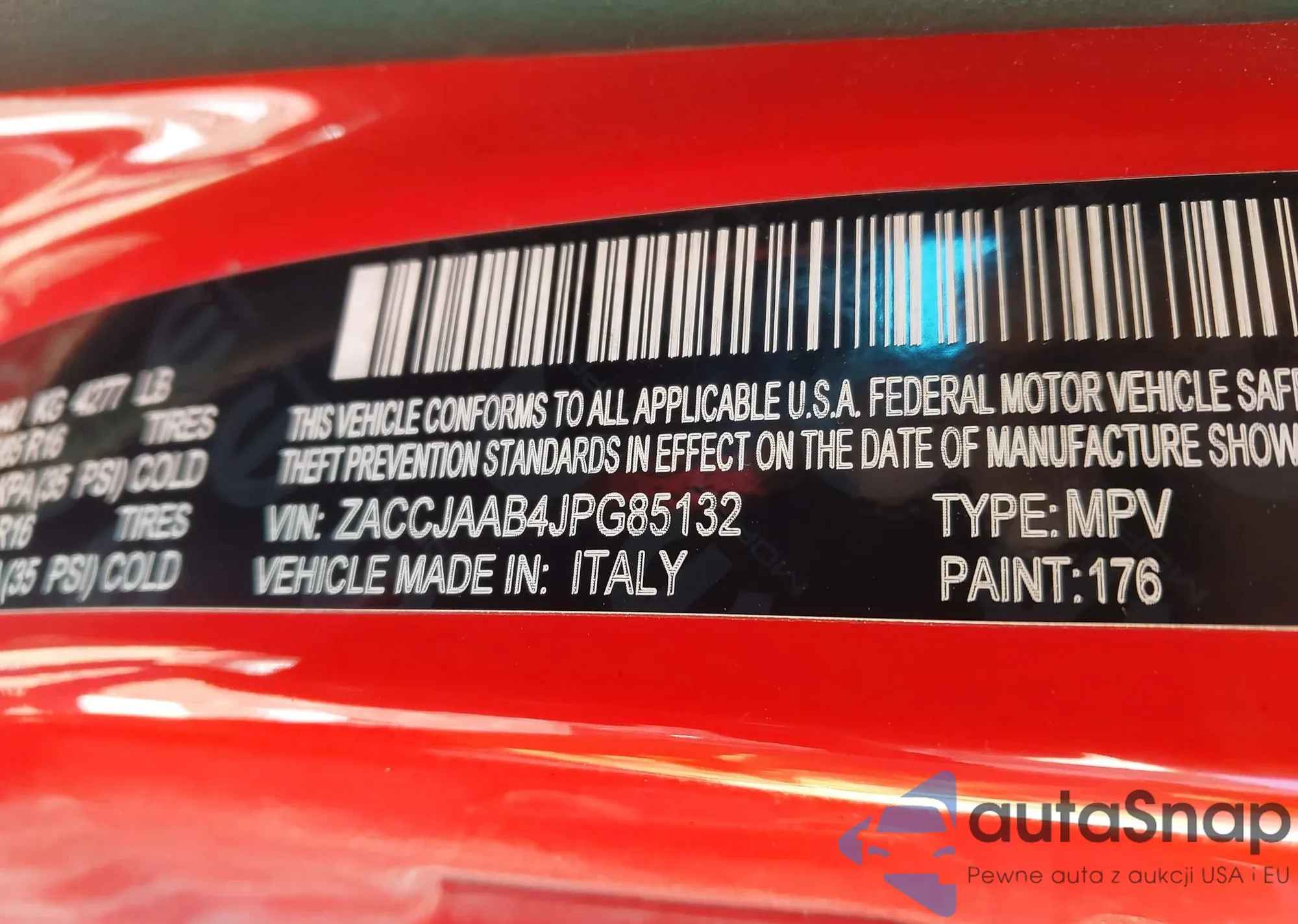 LOT: 43626891 VIN: ZACCJAAB4JPG85132