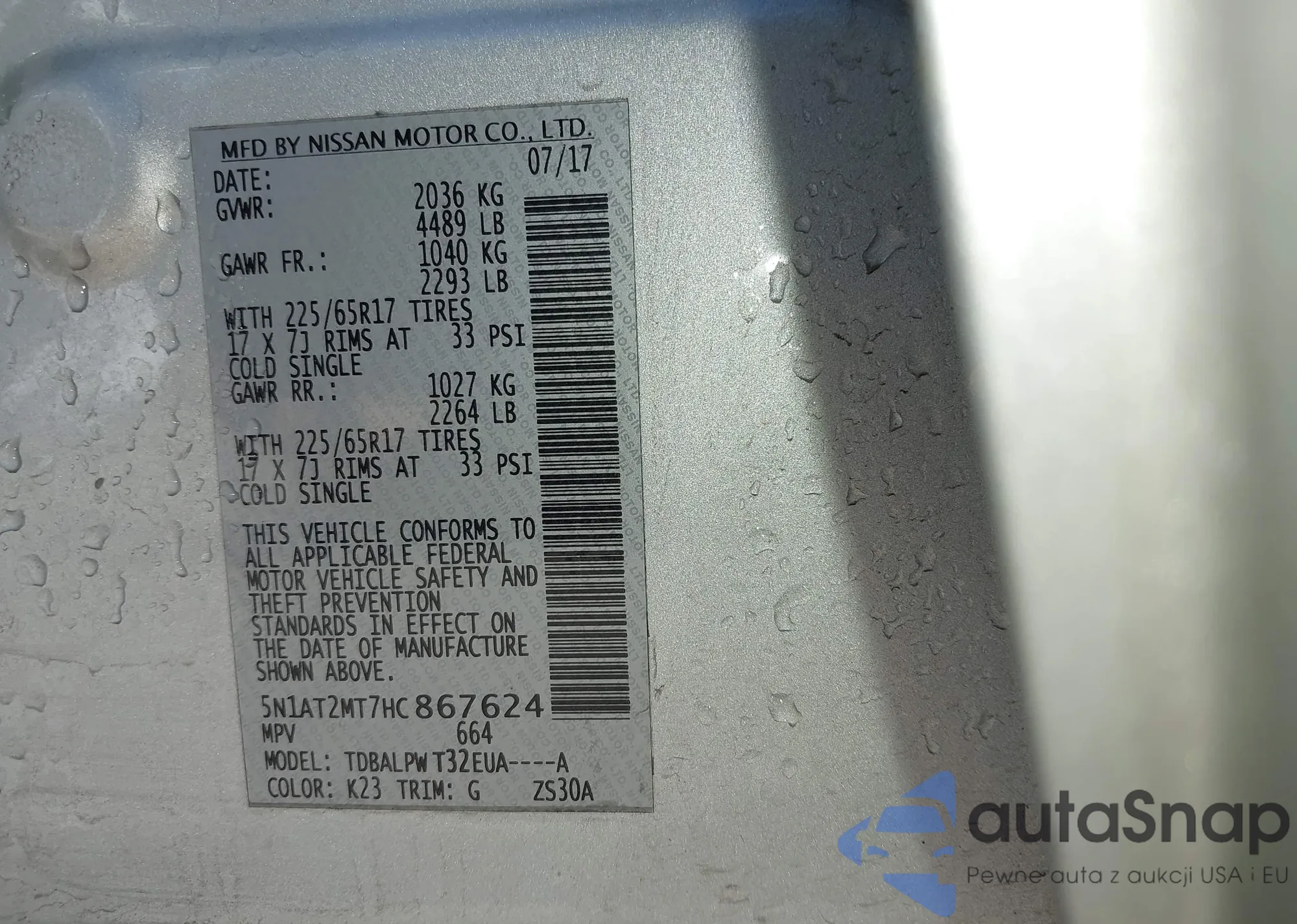 LOT: 43449313 VIN: 5N1AT2MT7HC867624