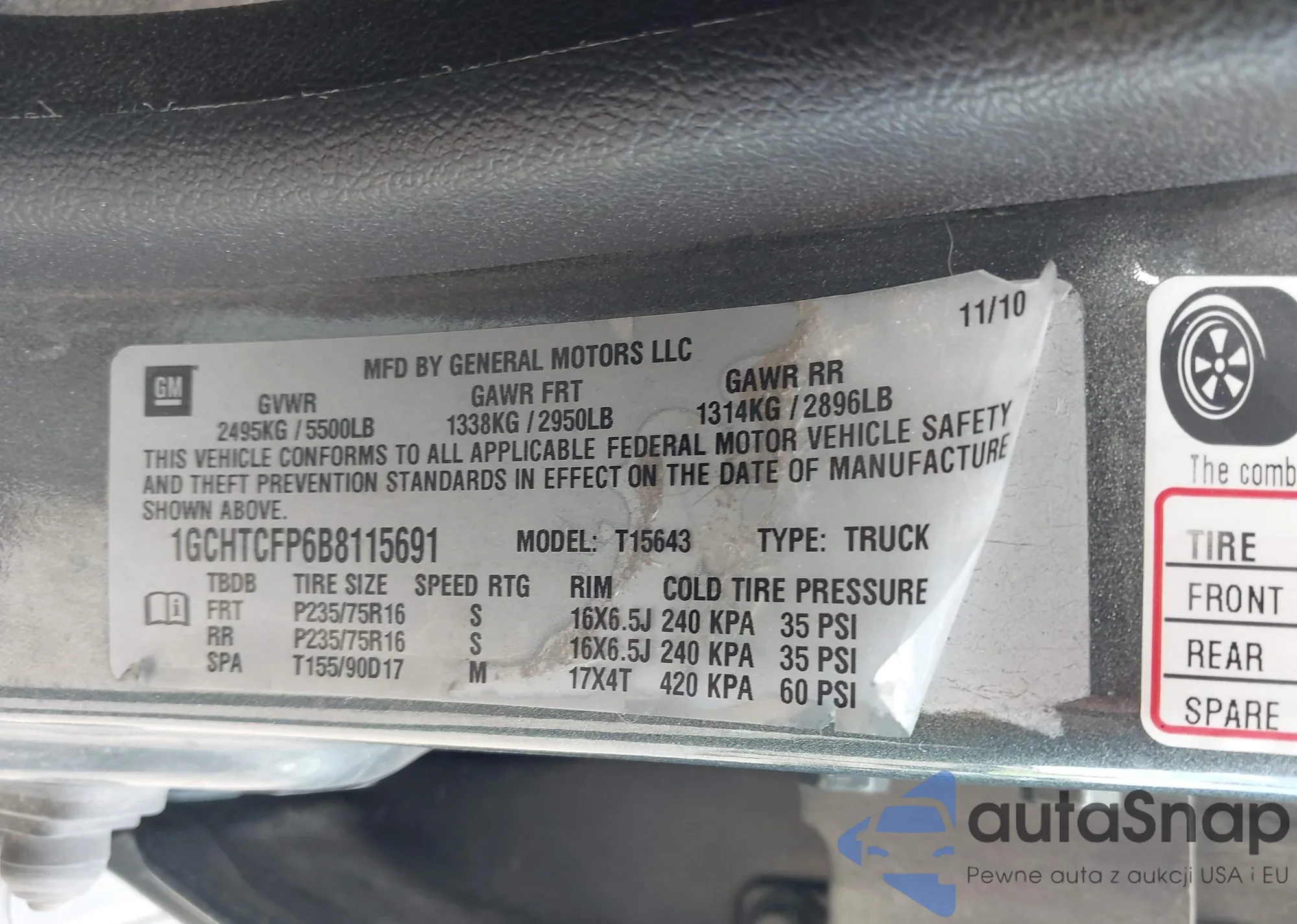 • VIN 1GCHTCFP6B8115691
