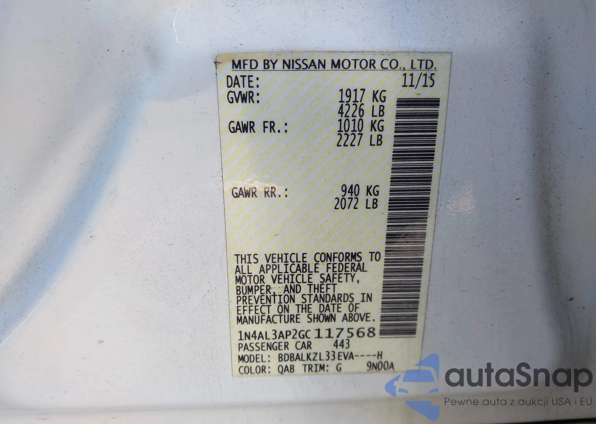 • VIN 1N4AL3AP2GC117568