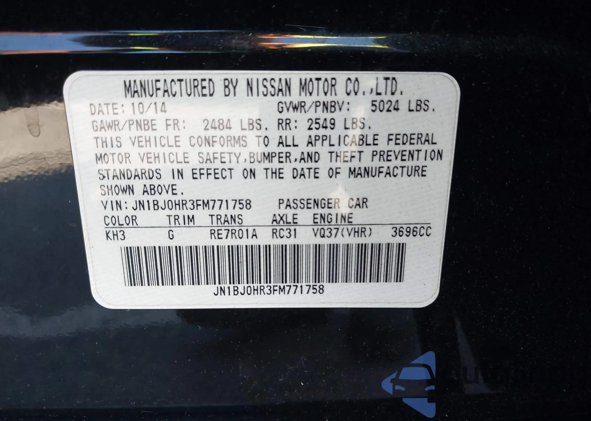 • VIN JN1BJ0HR3FM771758