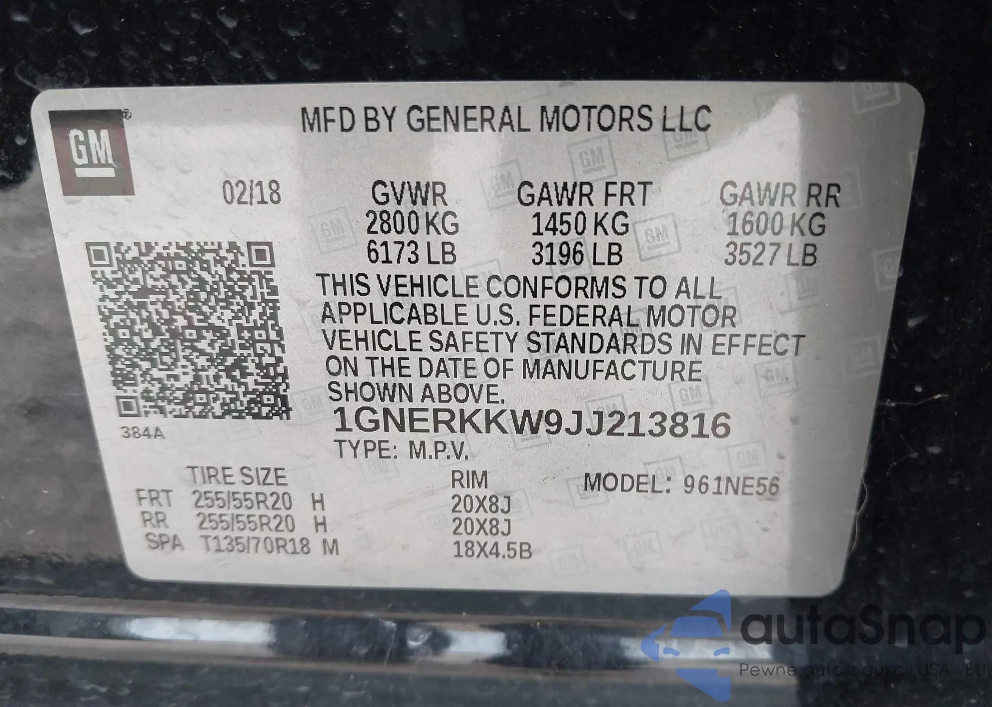 LOT: 43221752 VIN: 1GNERKKW9JJ213816