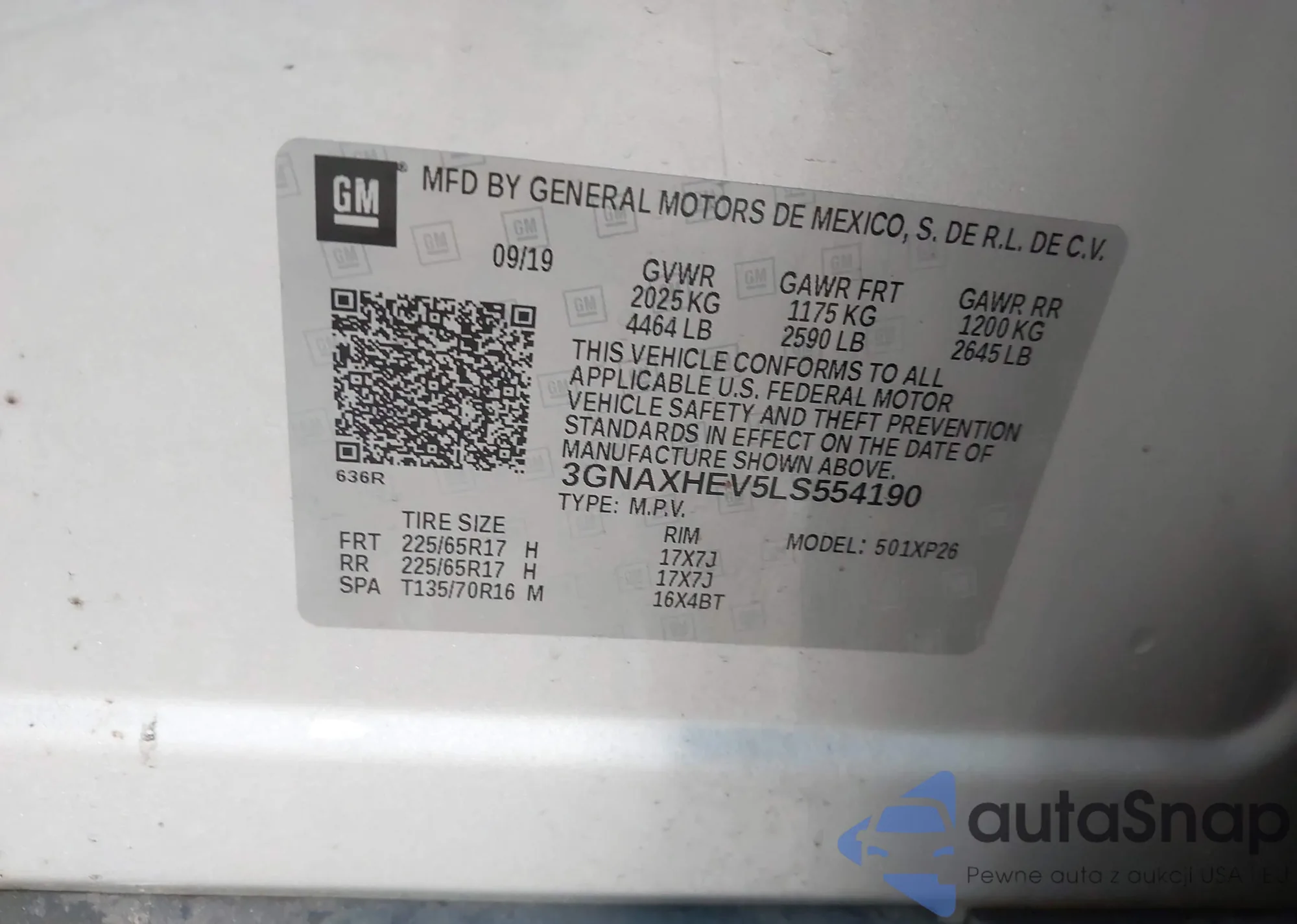LOT: 43330541 VIN: W1NKM4GB0SF329690