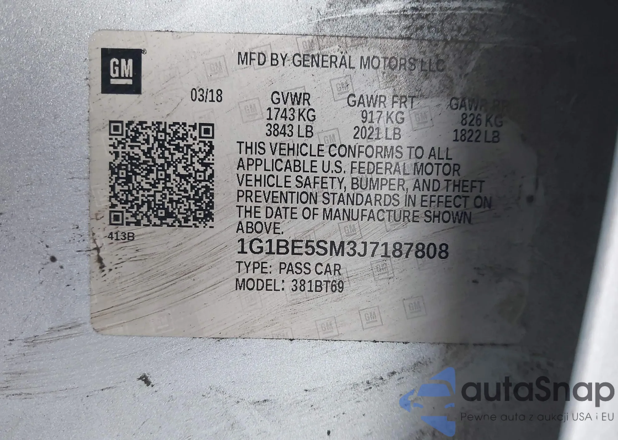LOT: 43531512 VIN: 1G1BE5SM3J7187808