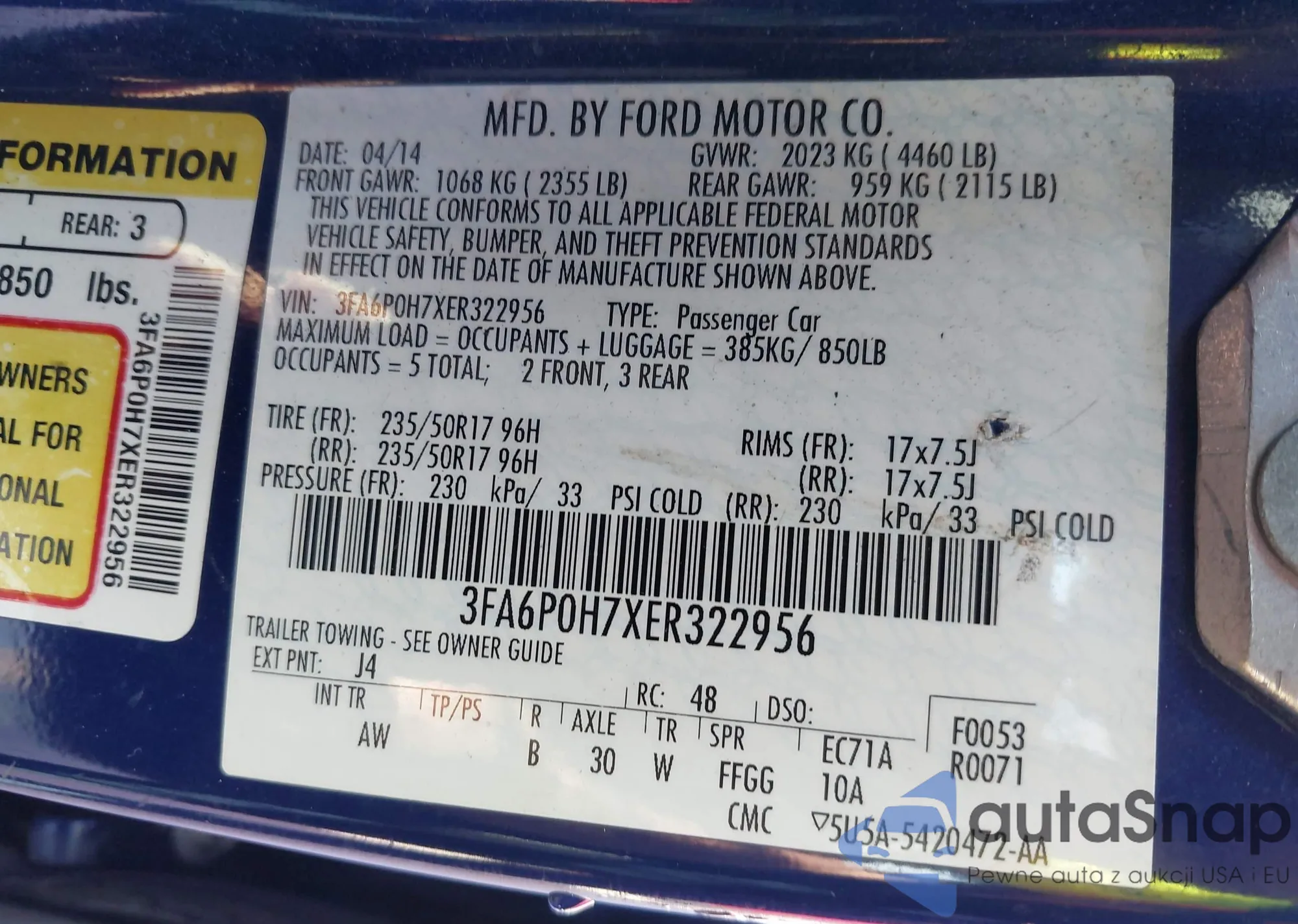 • VIN 3FA6P0H7XER322956