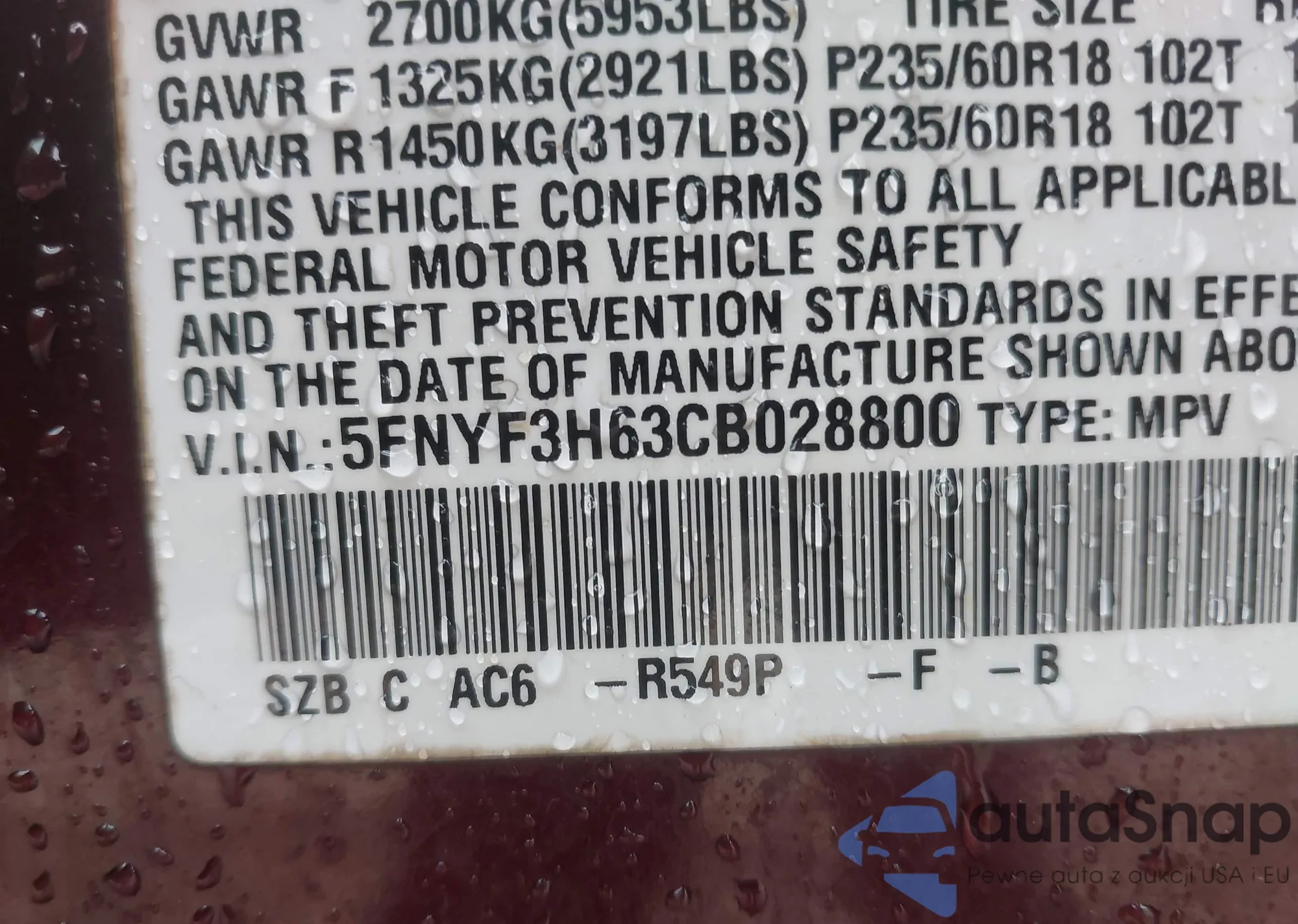 • VIN 1FMCU0G93HUD66976