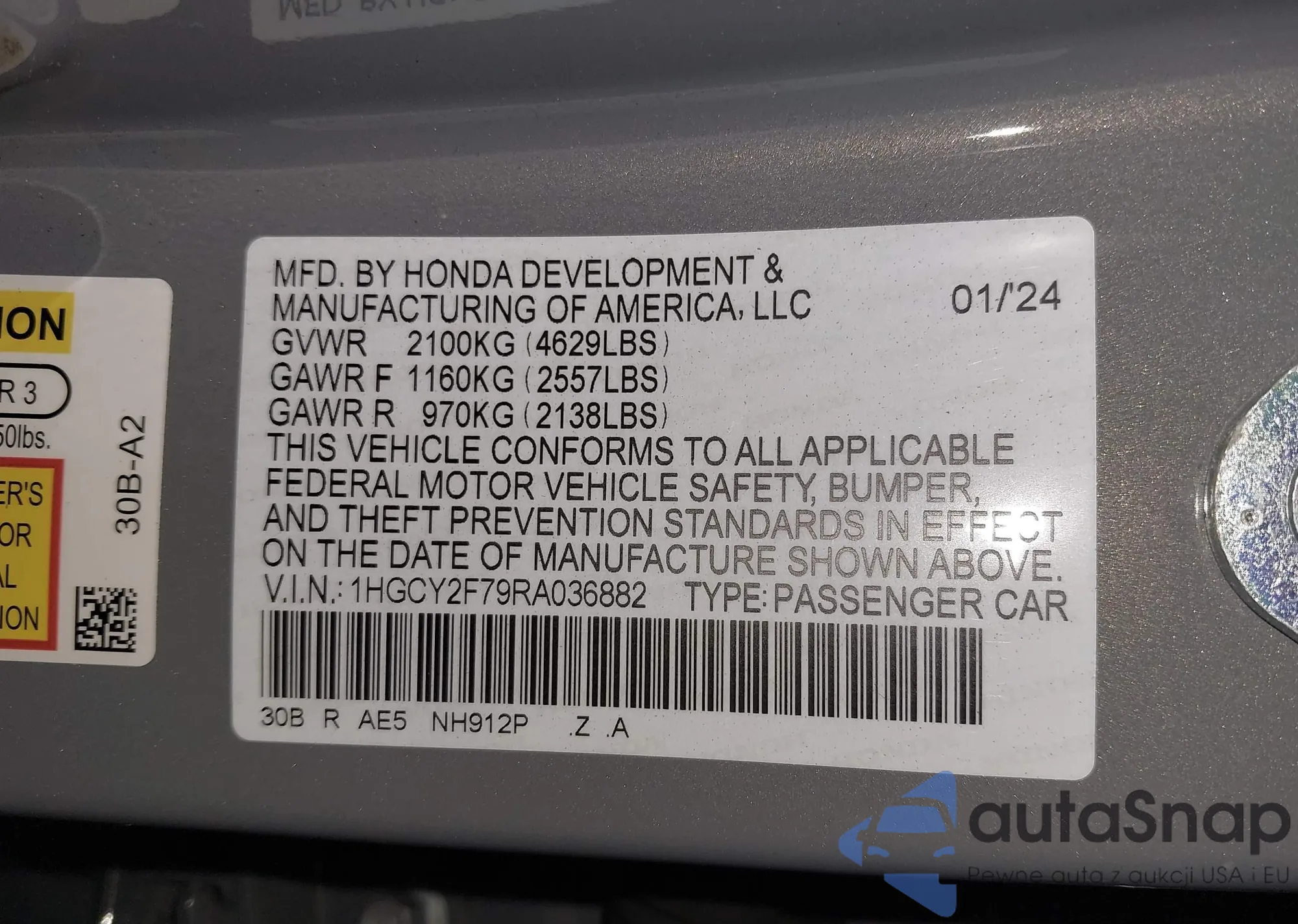 • VIN 1HGCY2F79RA036882