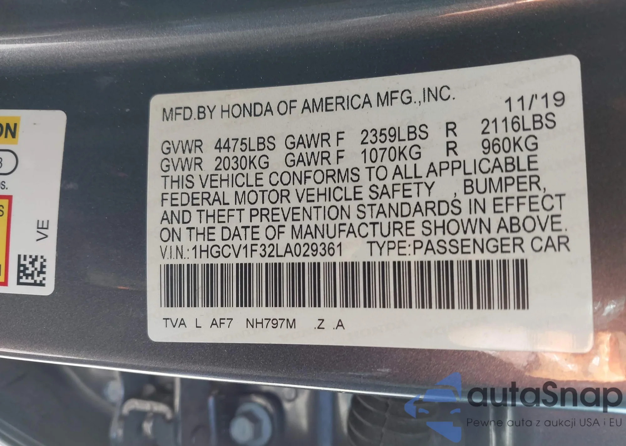 • VIN 1HGCV1F32LA029361