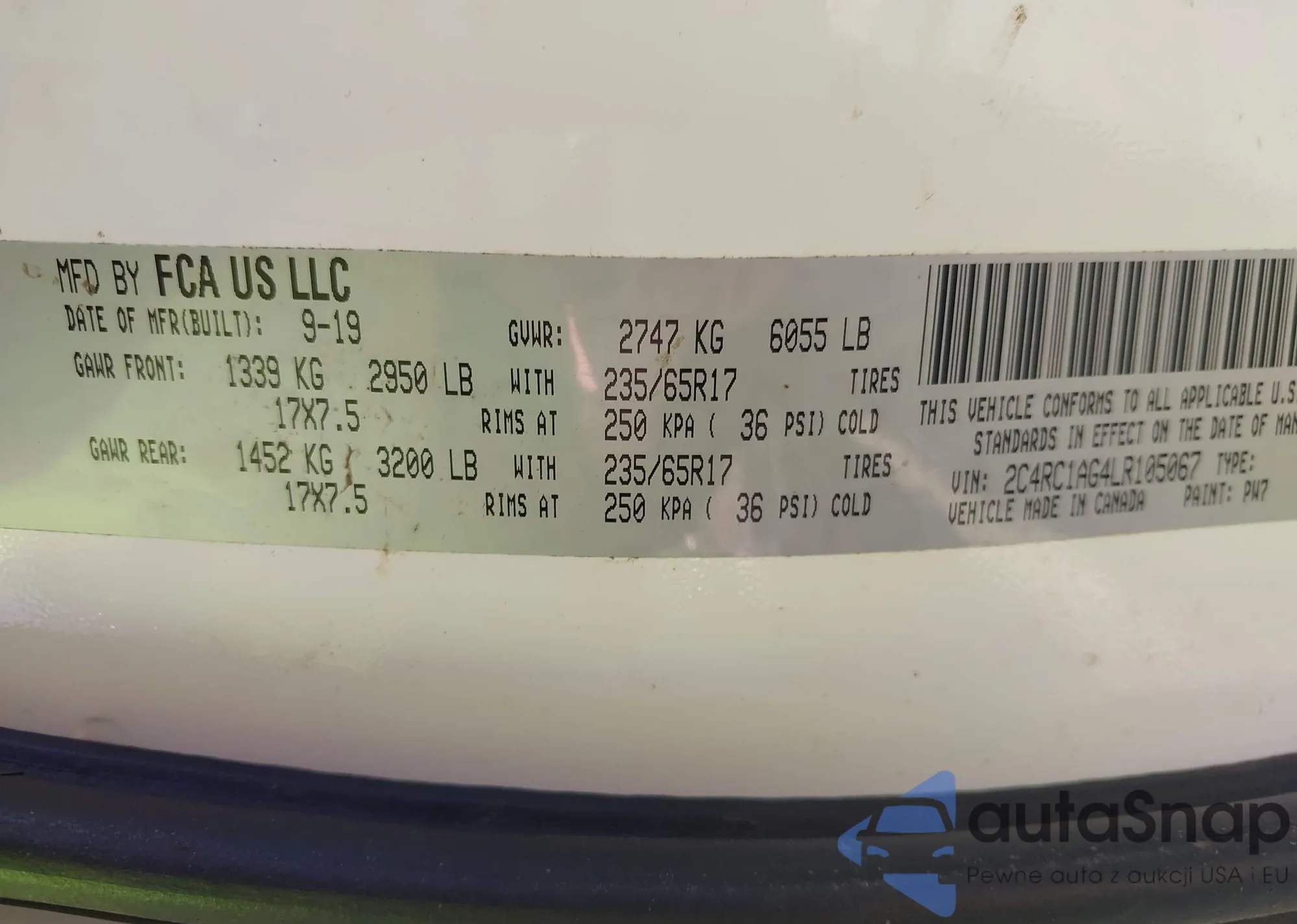 • VIN 2C4RC1AG4LR105067