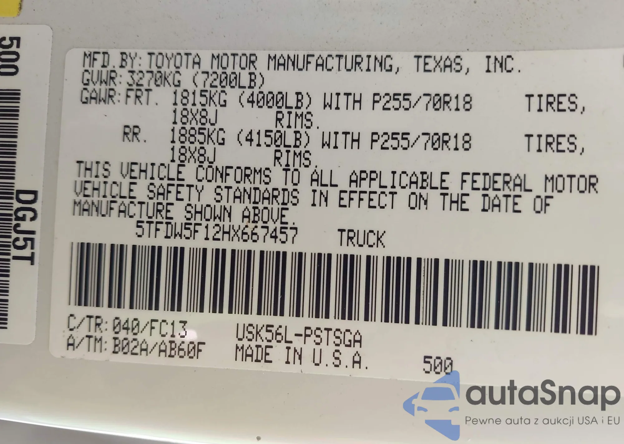 • VIN 5TFDW5F12HX667457