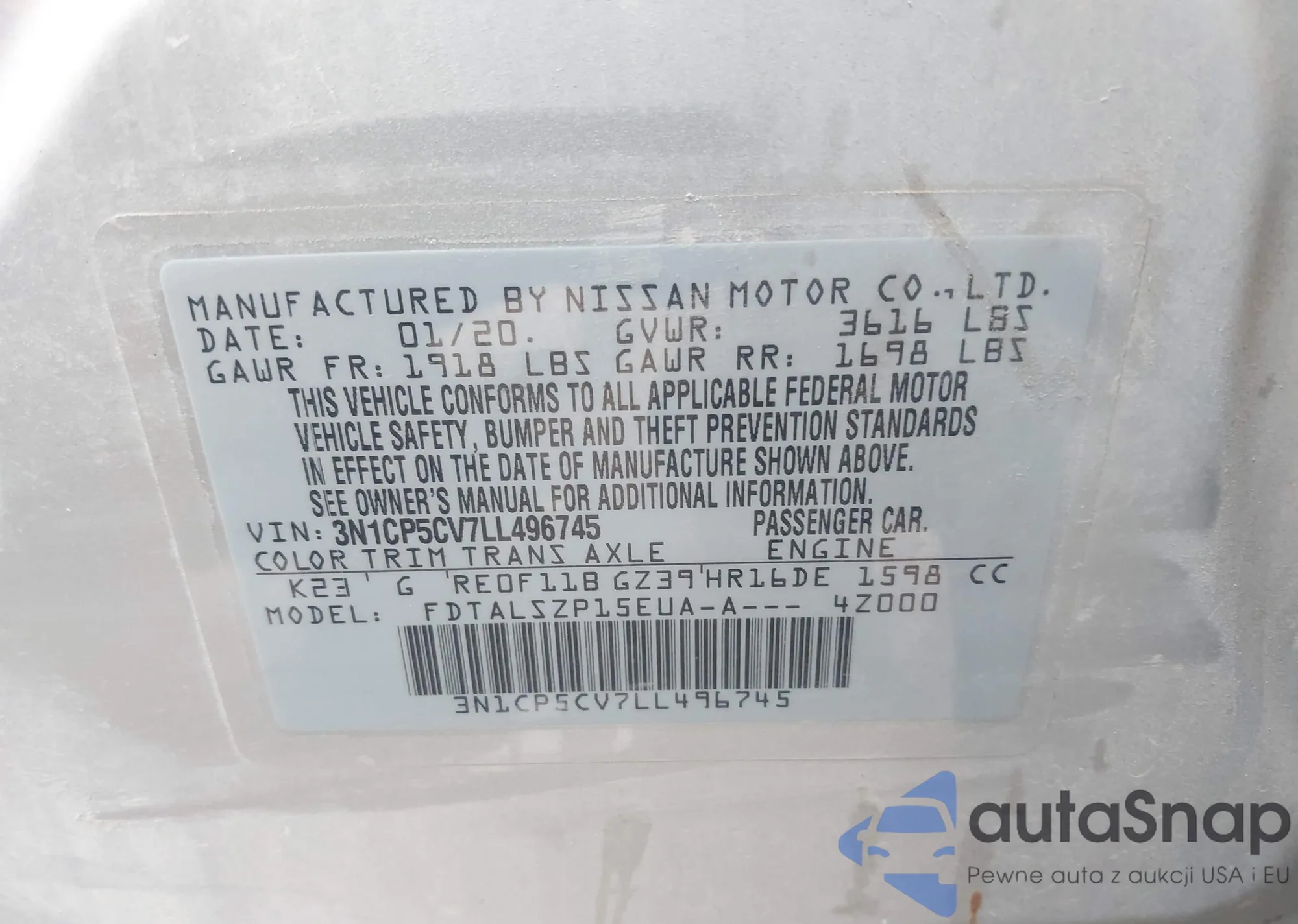 • VIN 3N1CP5CV7LL496745