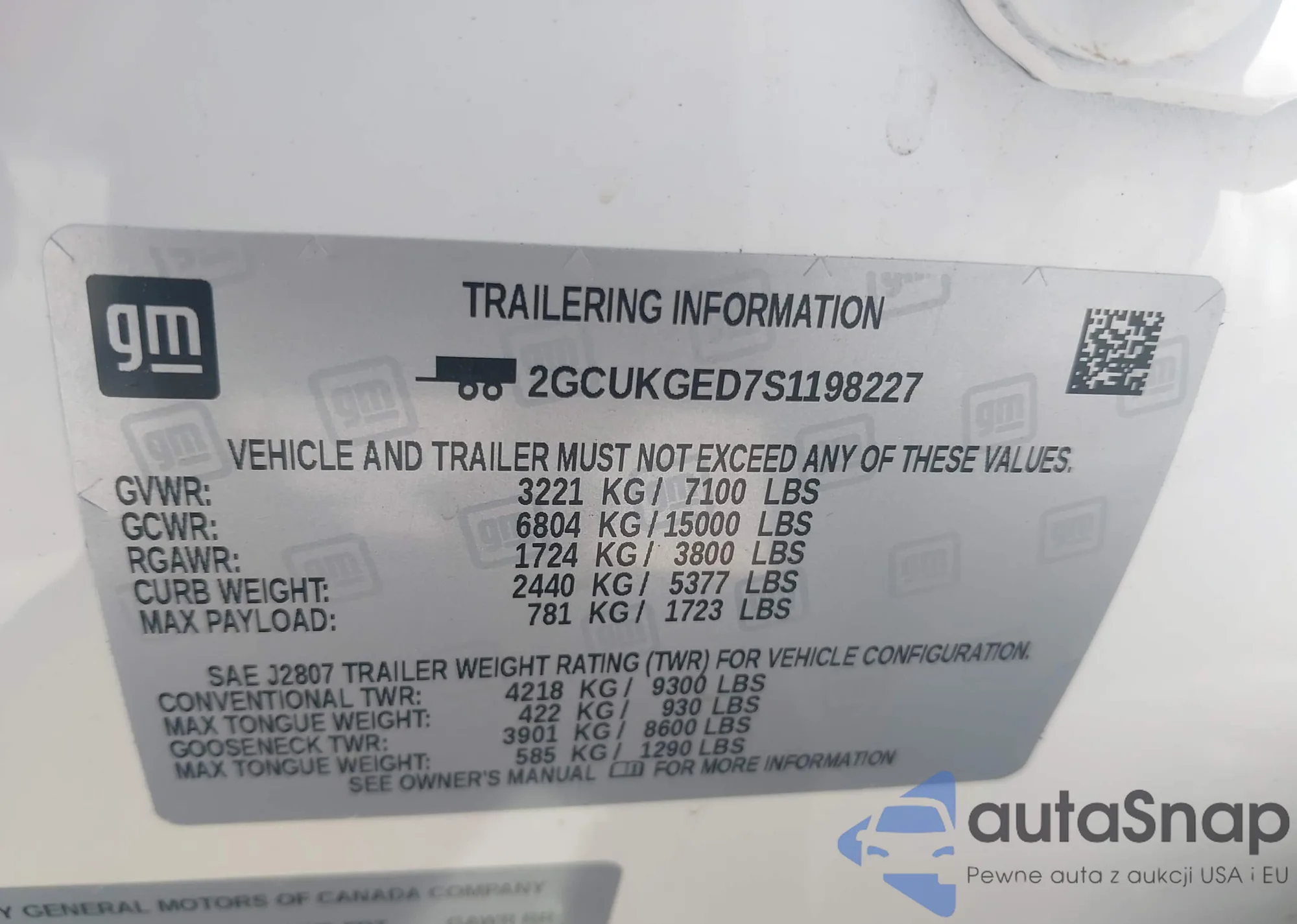 • VIN 1GYS9BRL8SR261926