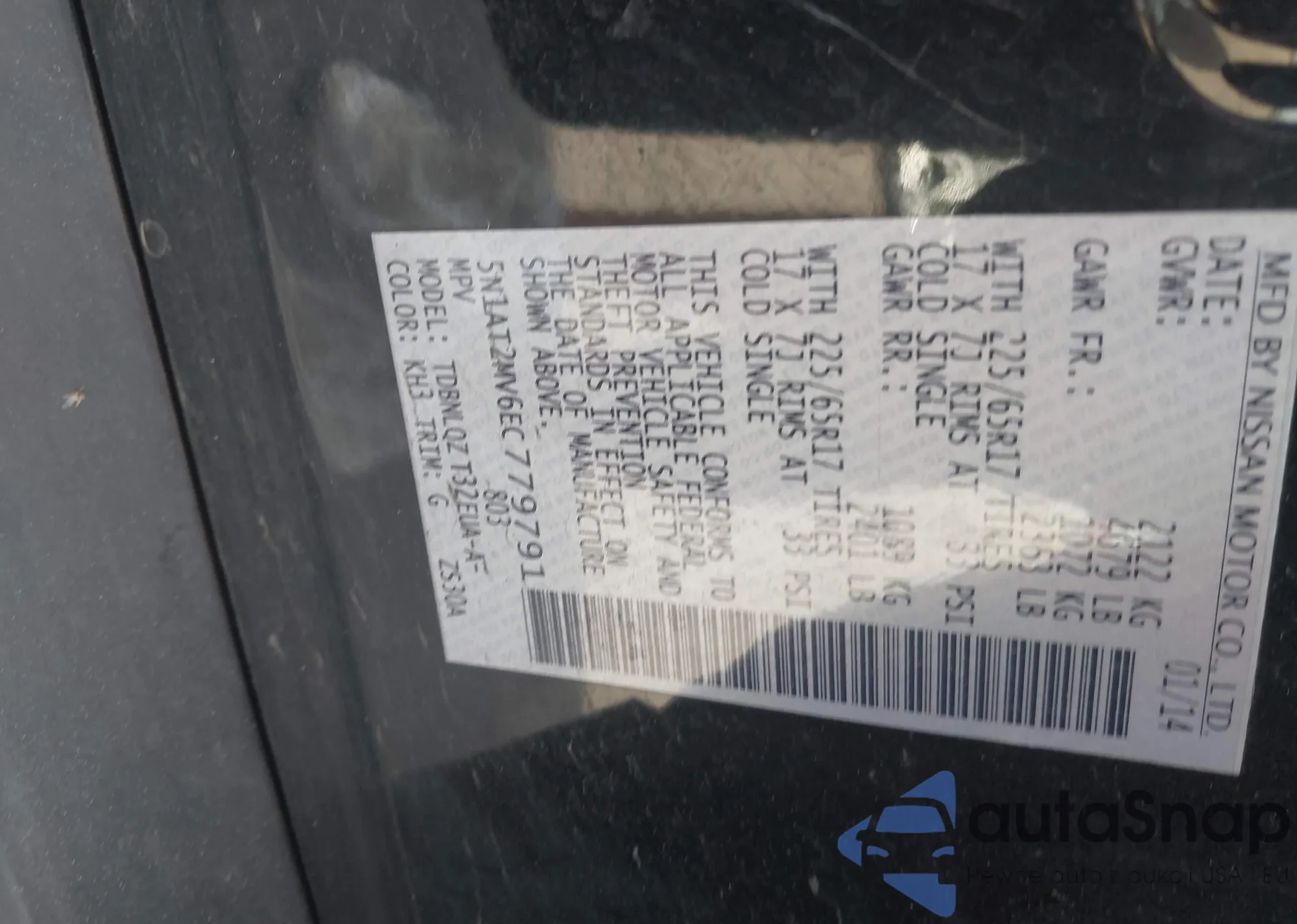 • VIN 5N1AT2MV6EC779791