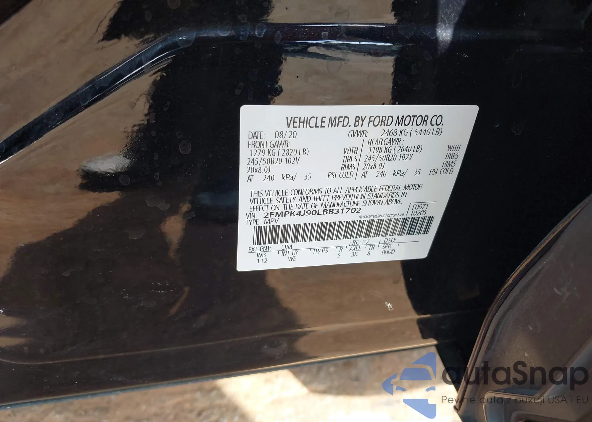 • VIN 2FMPK4J90LBB31702