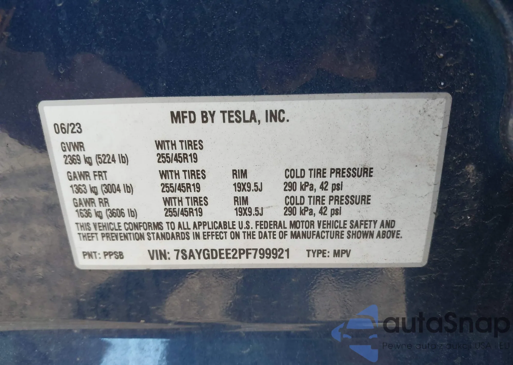 • VIN 7SAYGDEE2PF799921