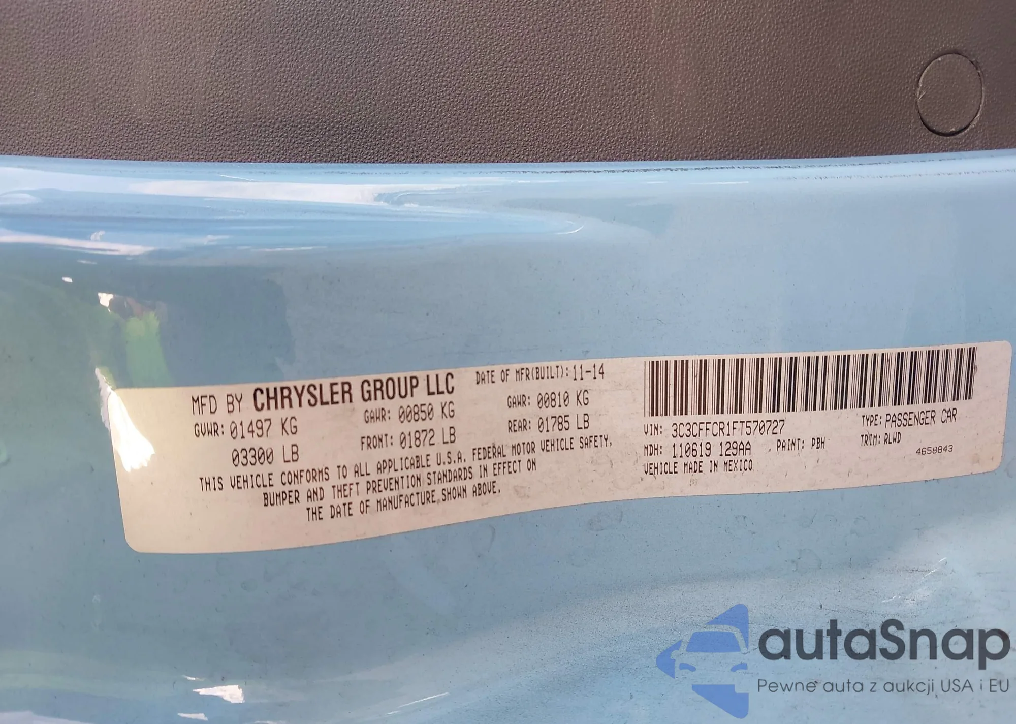 LOT: 43633012 VIN: 3C3CFFCR1FT570727
