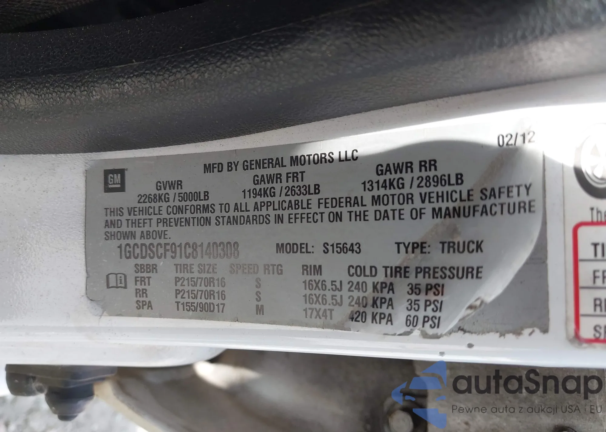 LOT: 43349822 VIN: 1G1PA5SH6D7163981