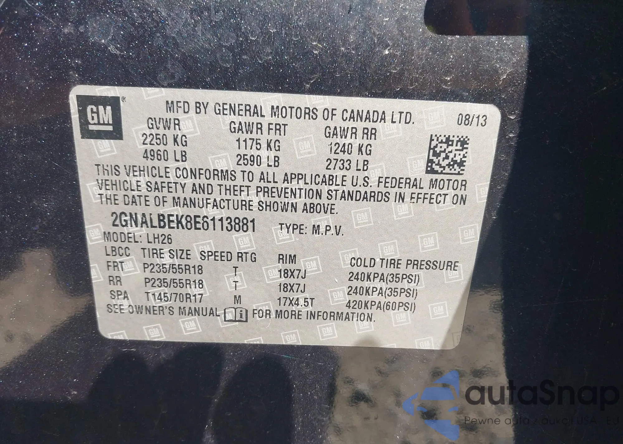 • VIN 2GNALBEK8E6113881