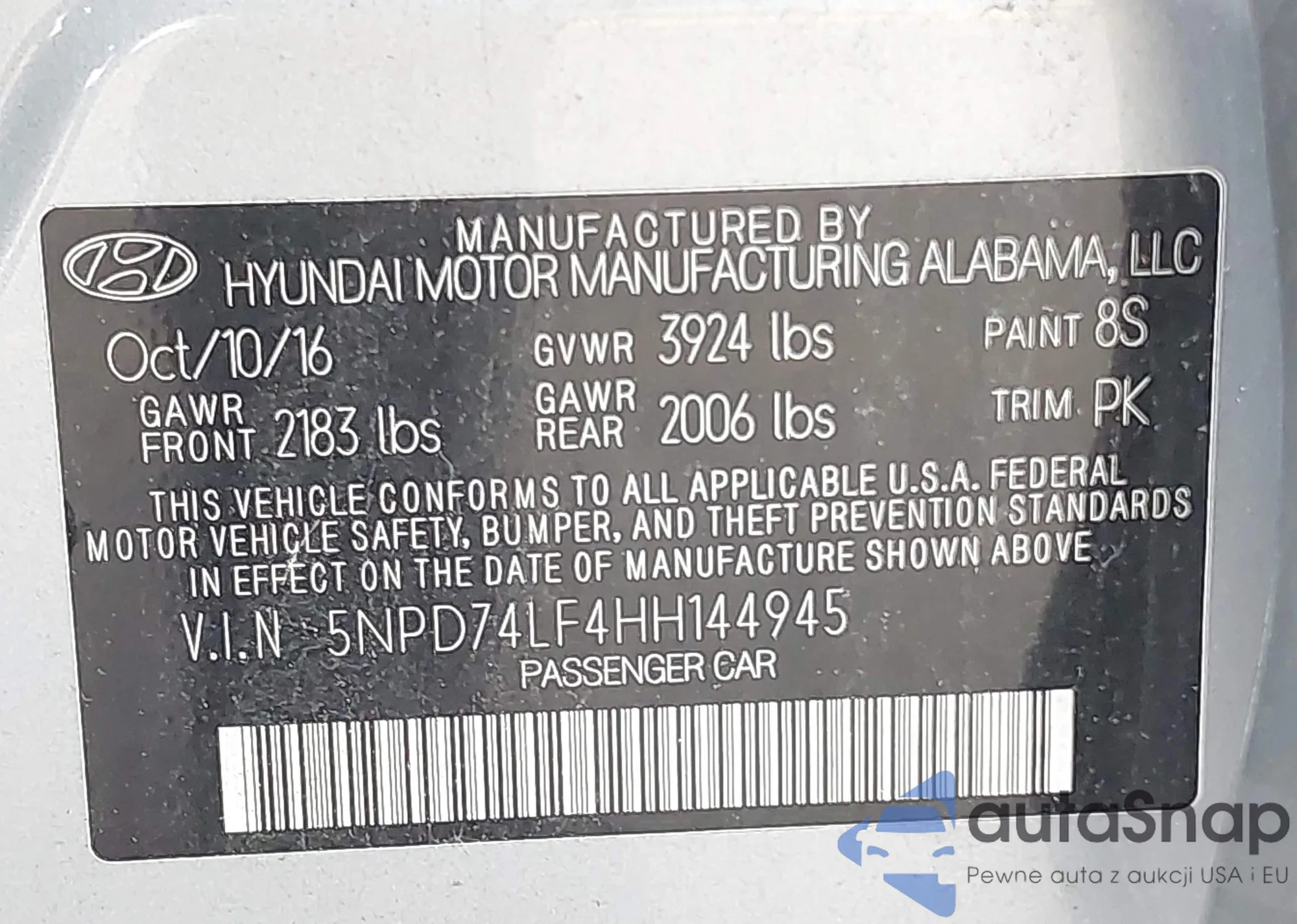 • VIN 5NPD74LF4HH144945
