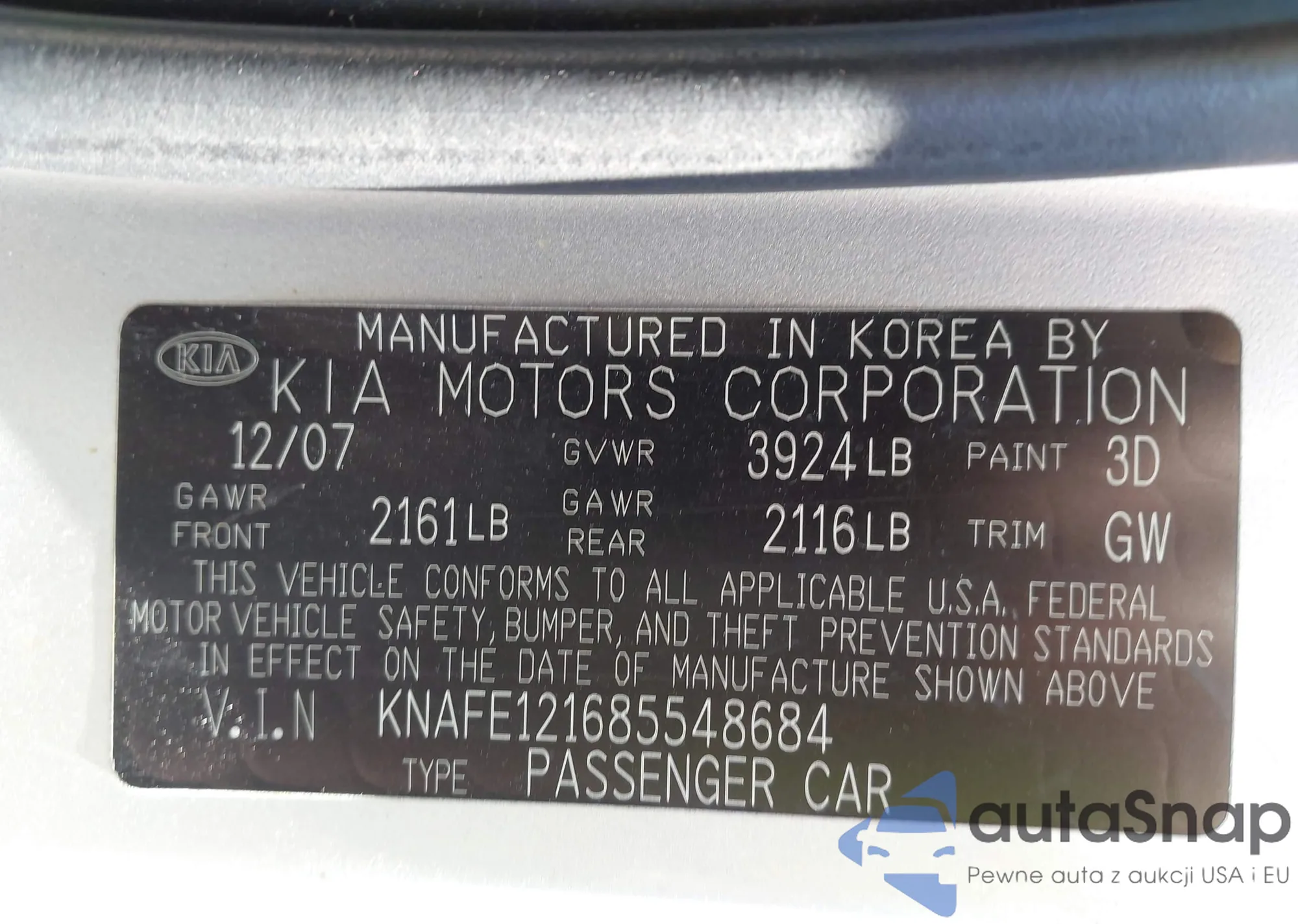 LOT: 43504114 VIN: KNAFE121685548684