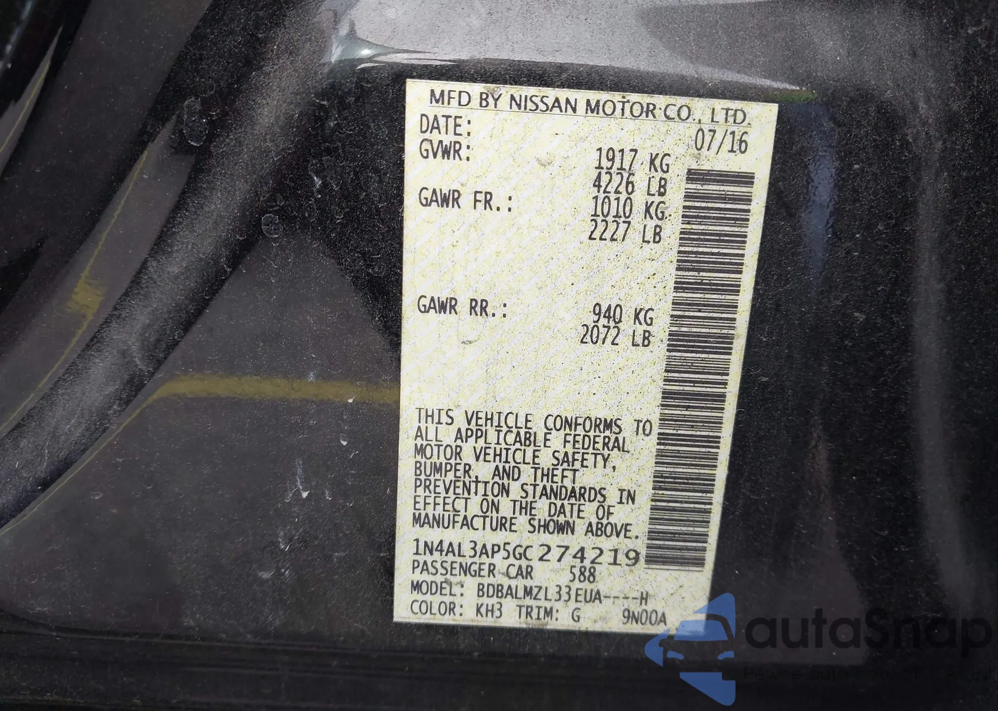 • VIN 1N4AA5AP9EC445858