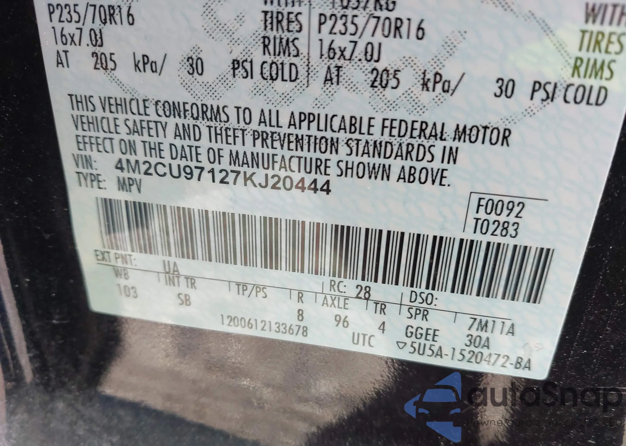 • VIN 4M2CU97127KJ20444
