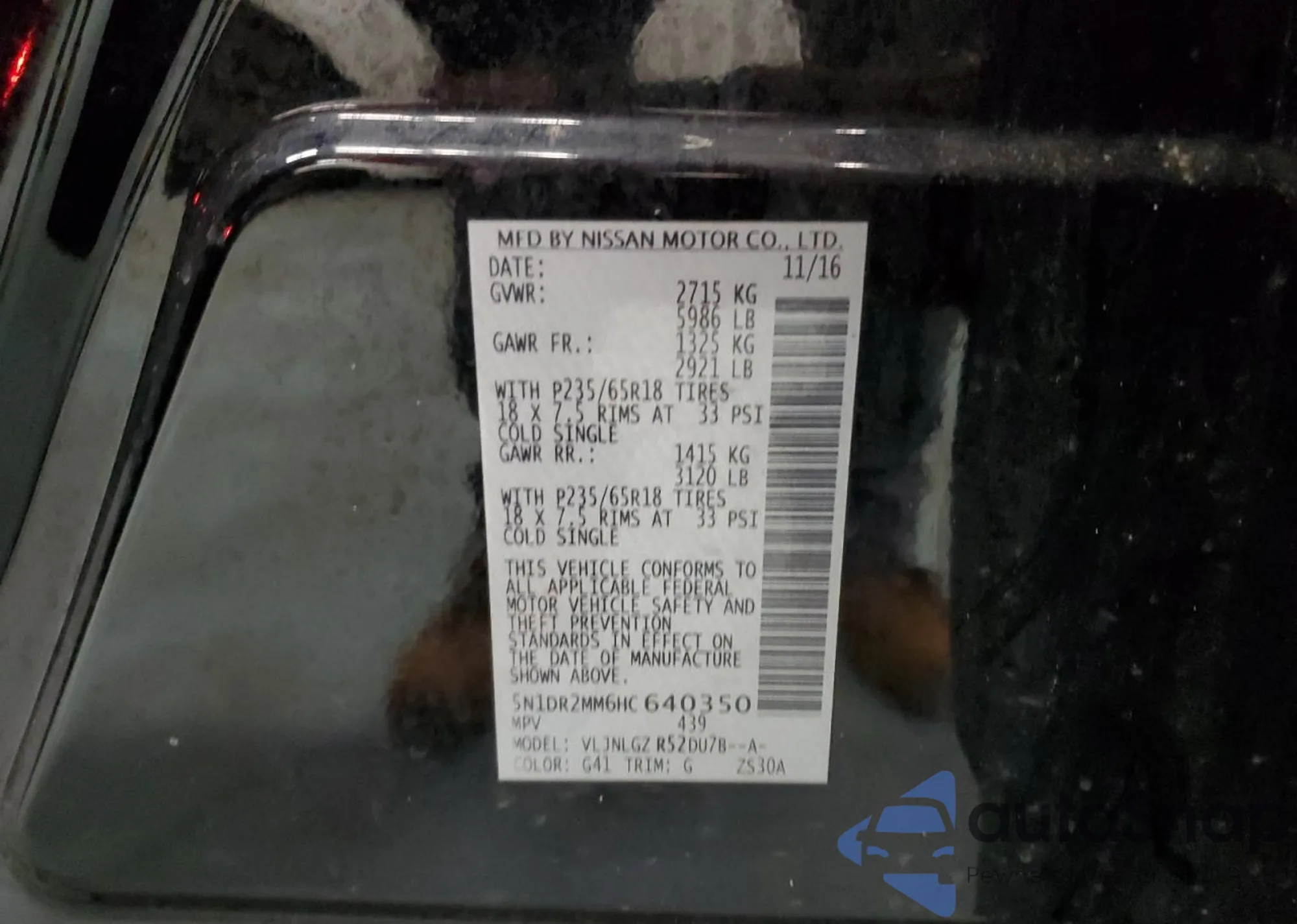 LOT: 92920935 VIN: 5N1DR2MM6HC640350