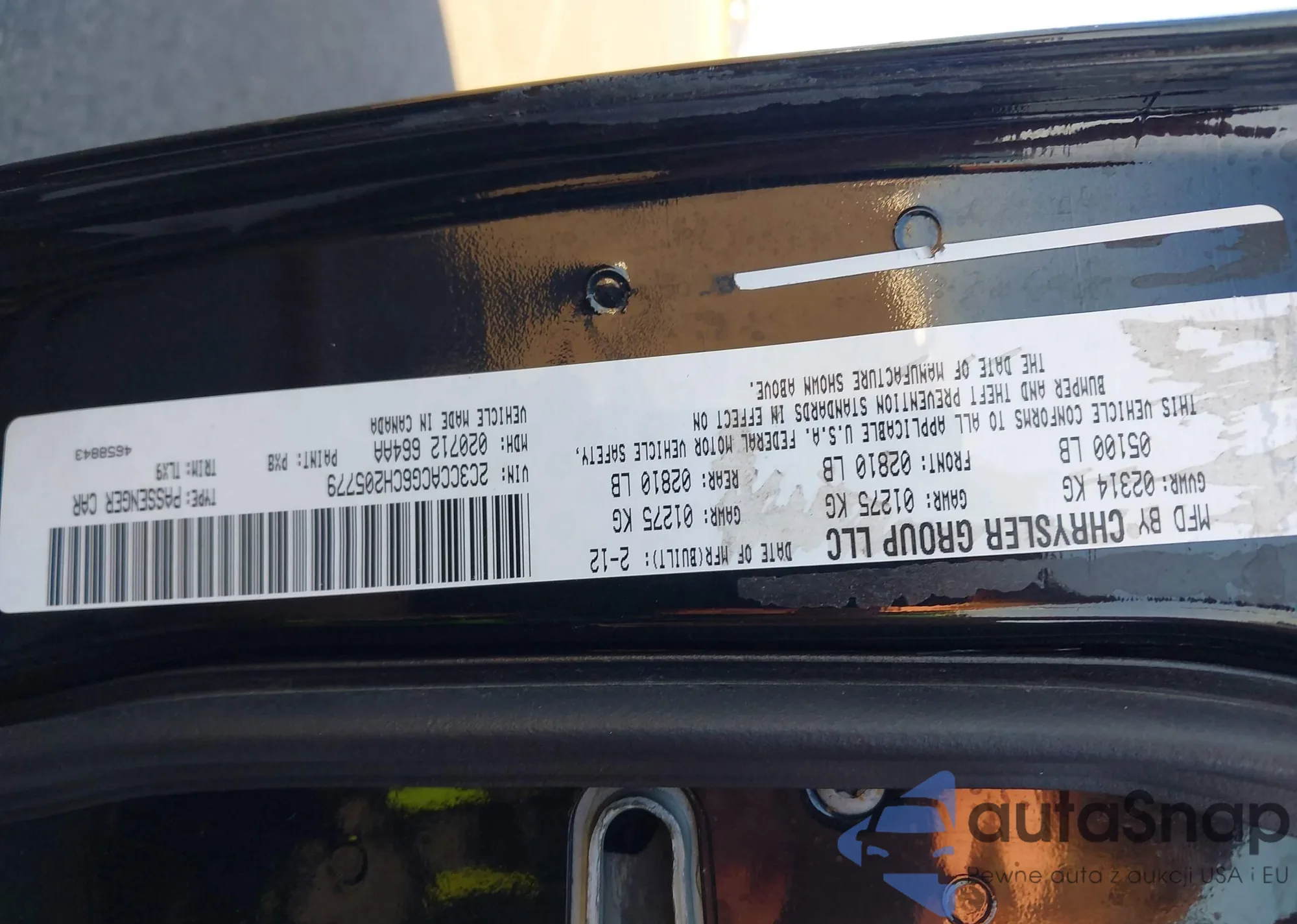 • VIN 1N4AL2AP6CC216639