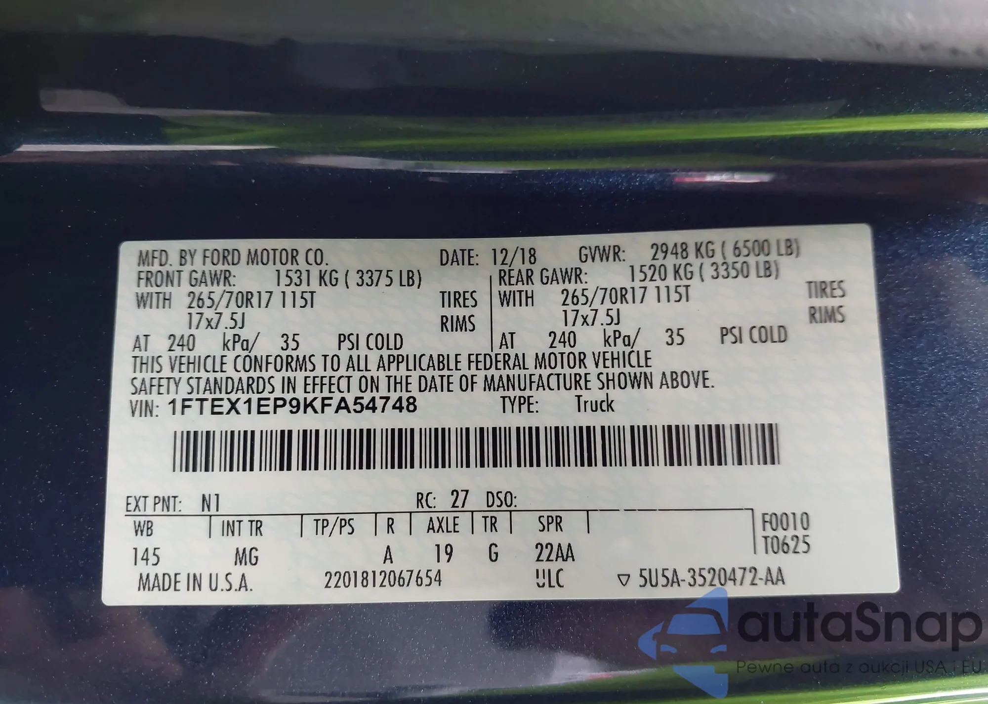• VIN 1FTFW1EF7DKD10958