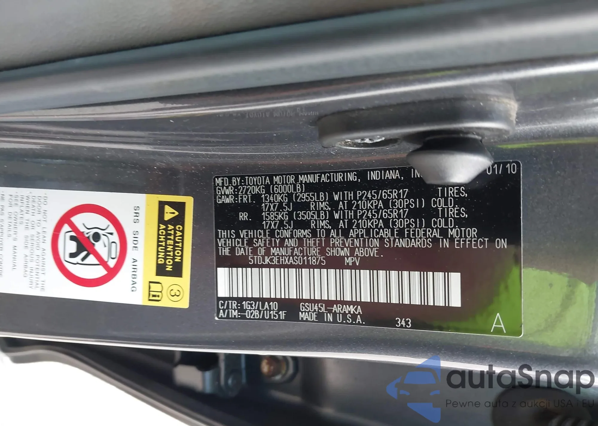 LOT: 43515498 VIN: 5TDJK3EHXAS011875
