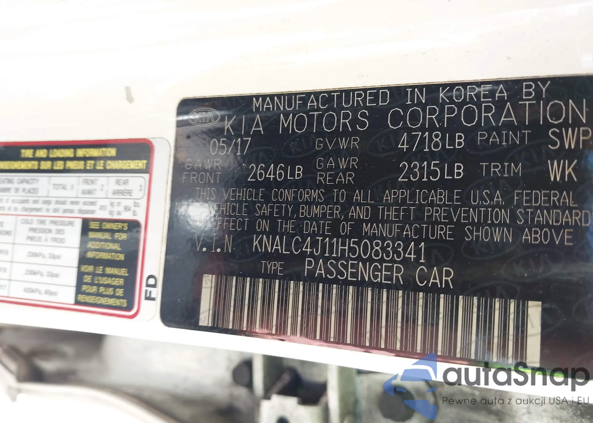 • VIN KNALC4J11H5083341