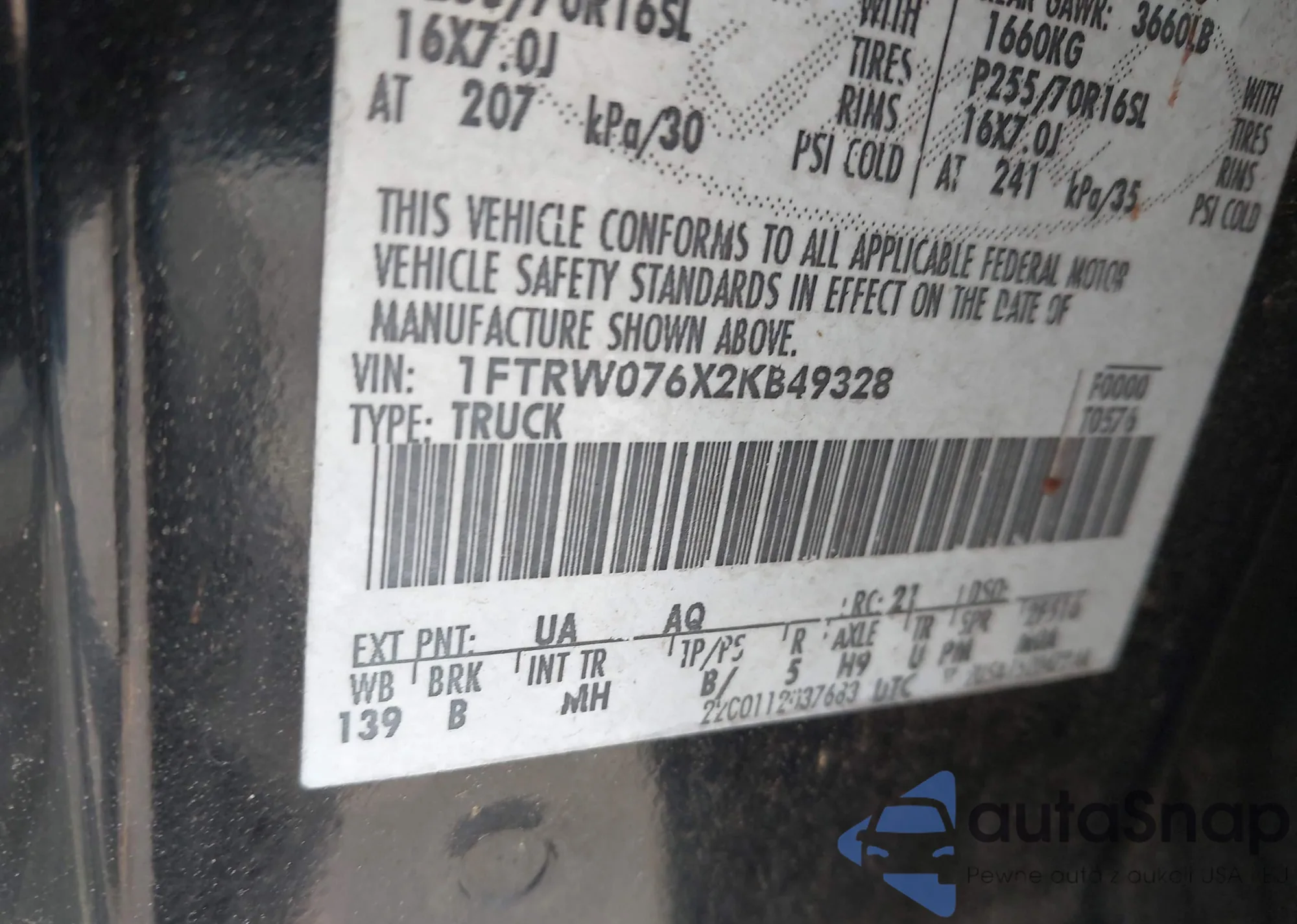 • VIN 1FTFW1EGXJFC08146