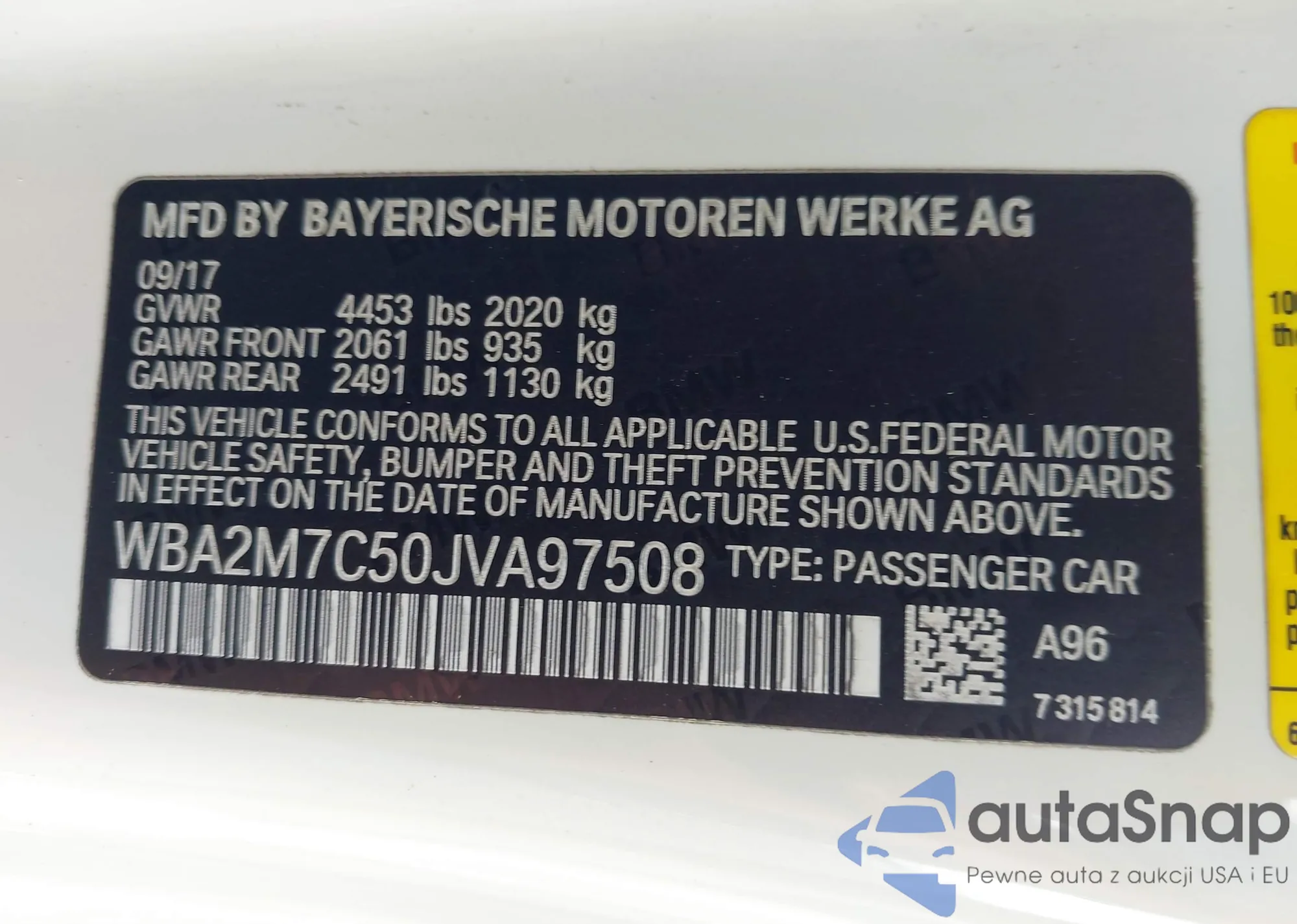 • VIN WBA2M7C50JVA97508