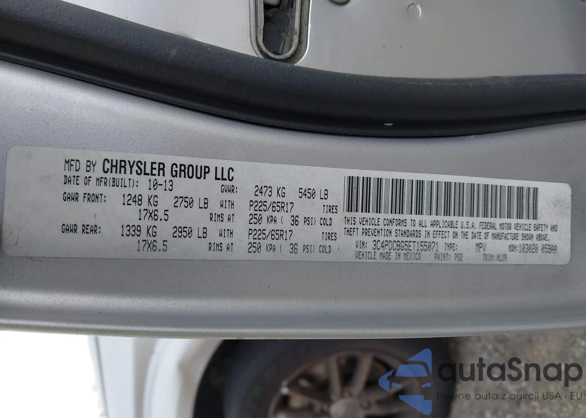 LOT: 43631829 VIN: 3C4PDCBG5ET155071