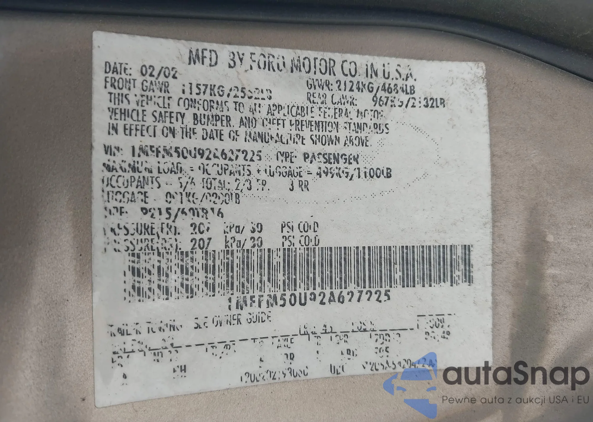 LOT: 43728093 VIN: 5TFAW5F18HX626379