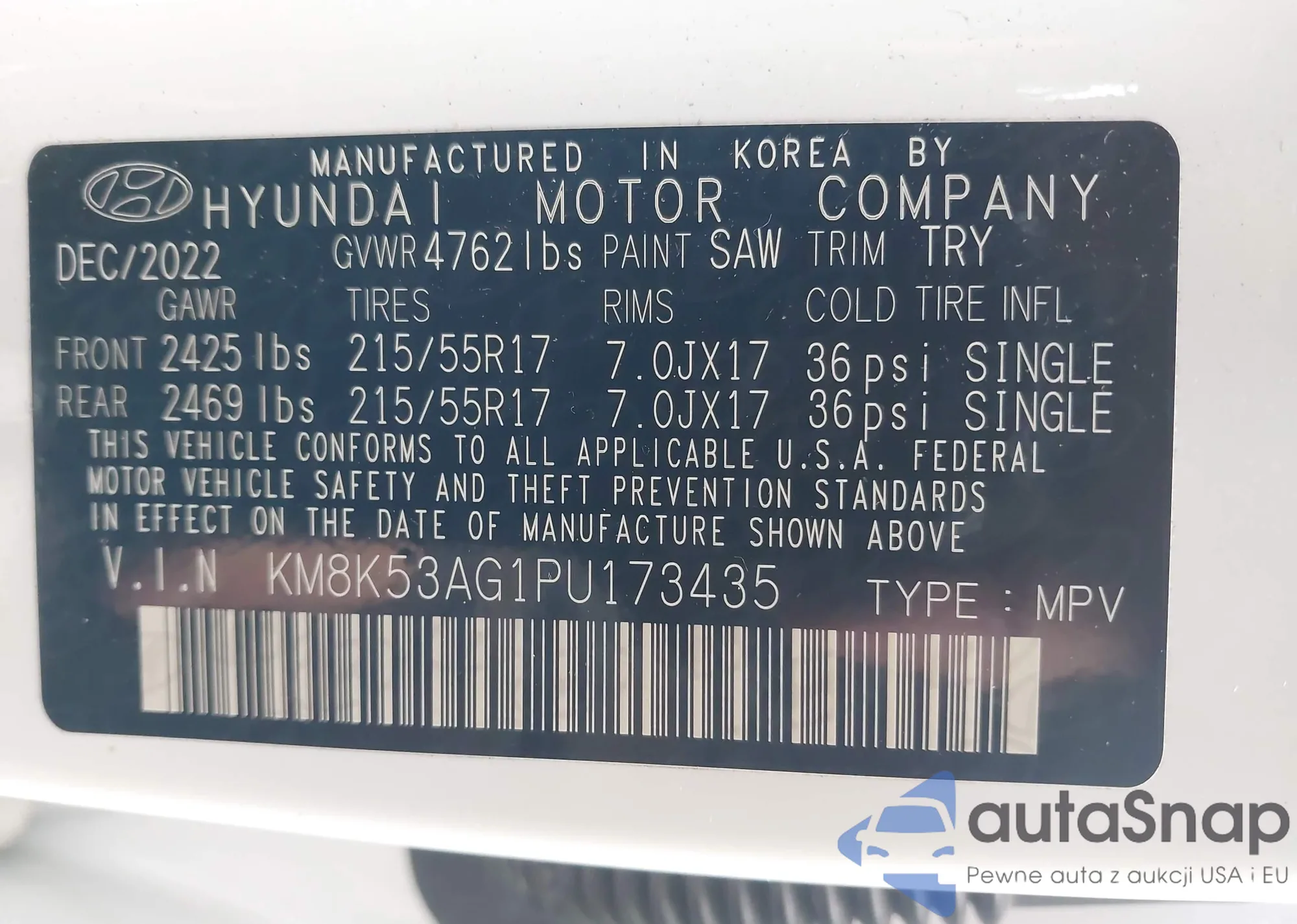 • VIN 5XYK3CDF1RG201333