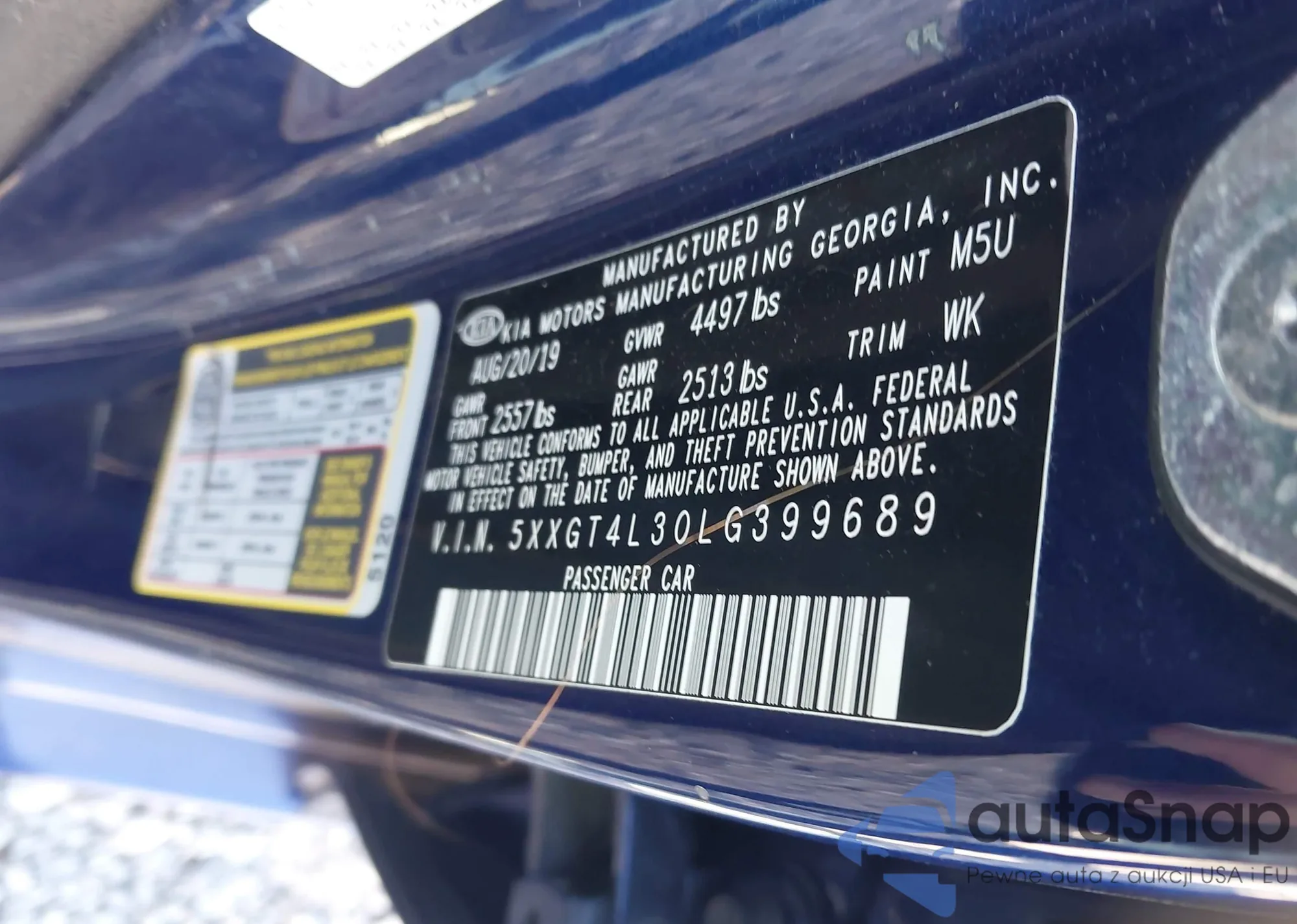 • VIN 5XXGT4L30LG399689
