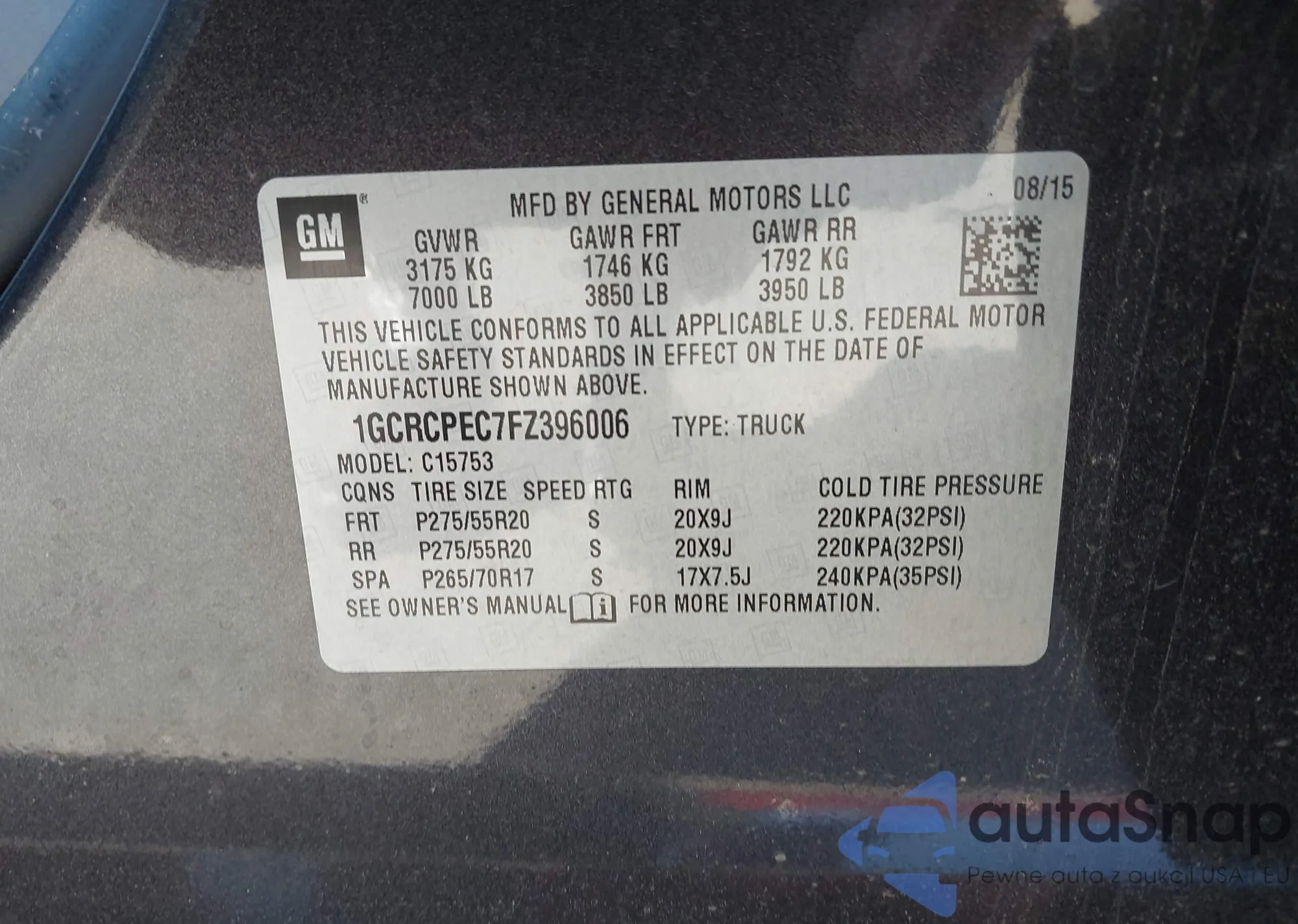 • VIN 1GCRCPEC7FZ396006