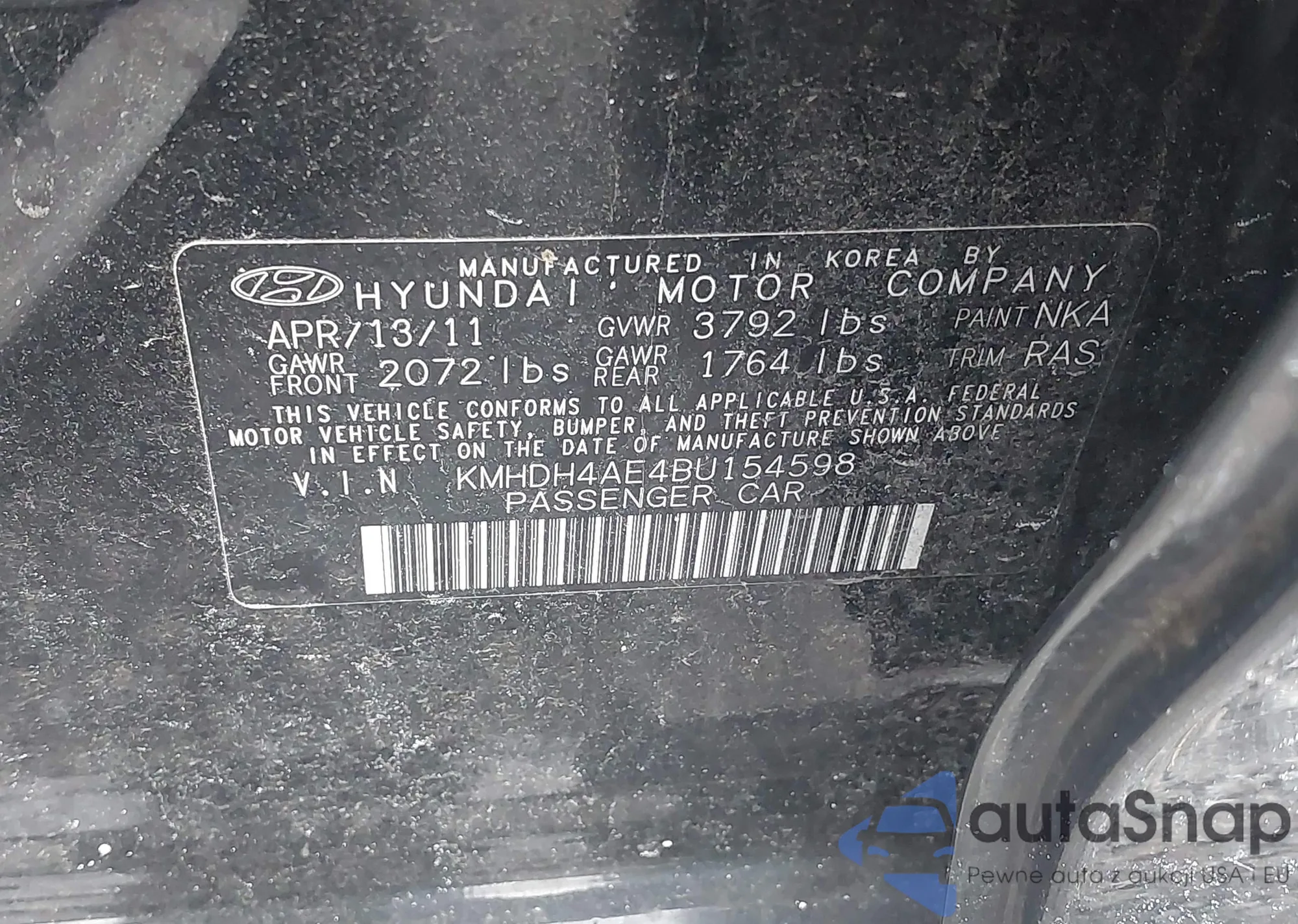 LOT: 43197404 VIN: KMHDH4AE4BU154598
