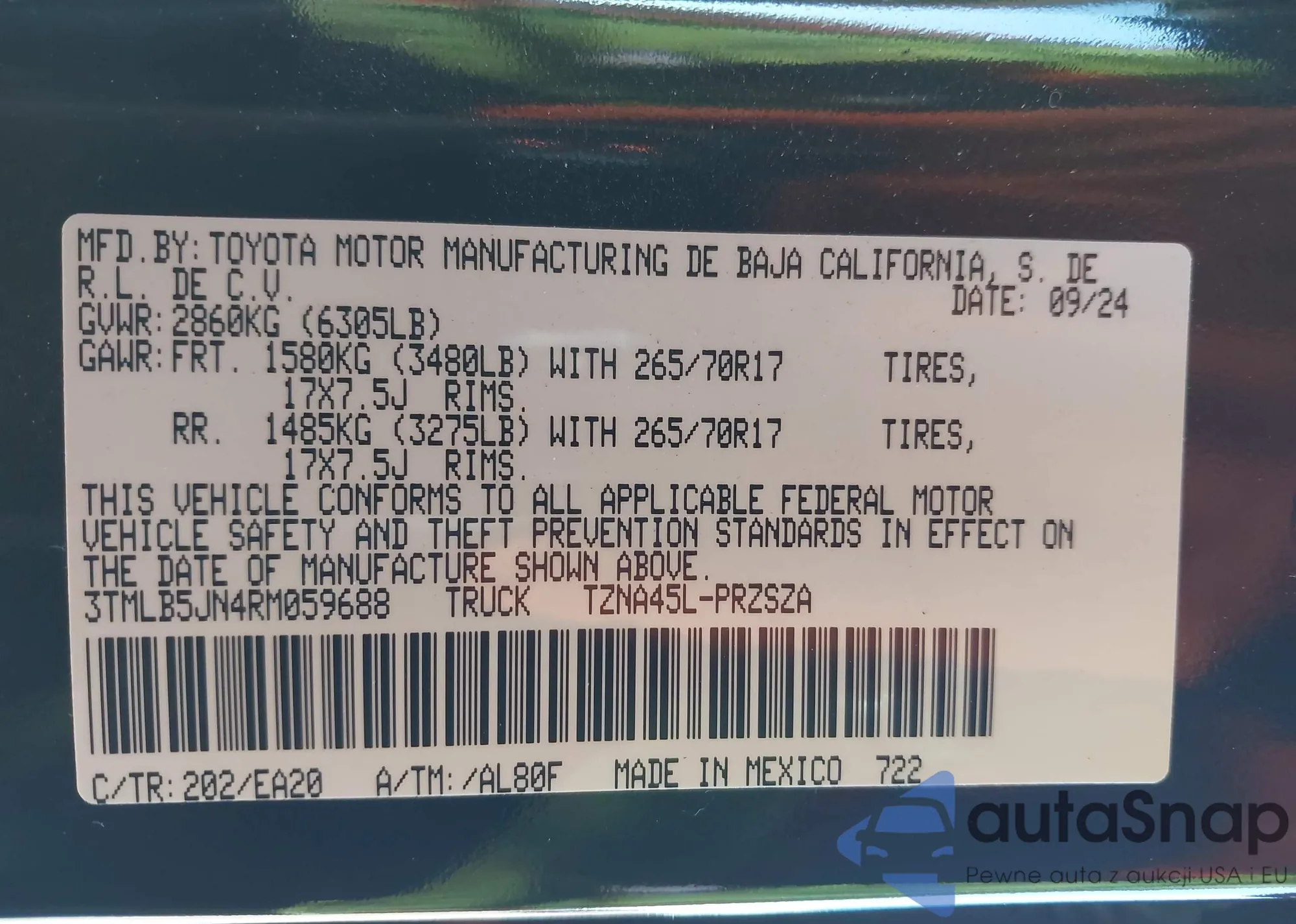 LOT: 43434914 VIN: 2T3W1RFV2MC109531