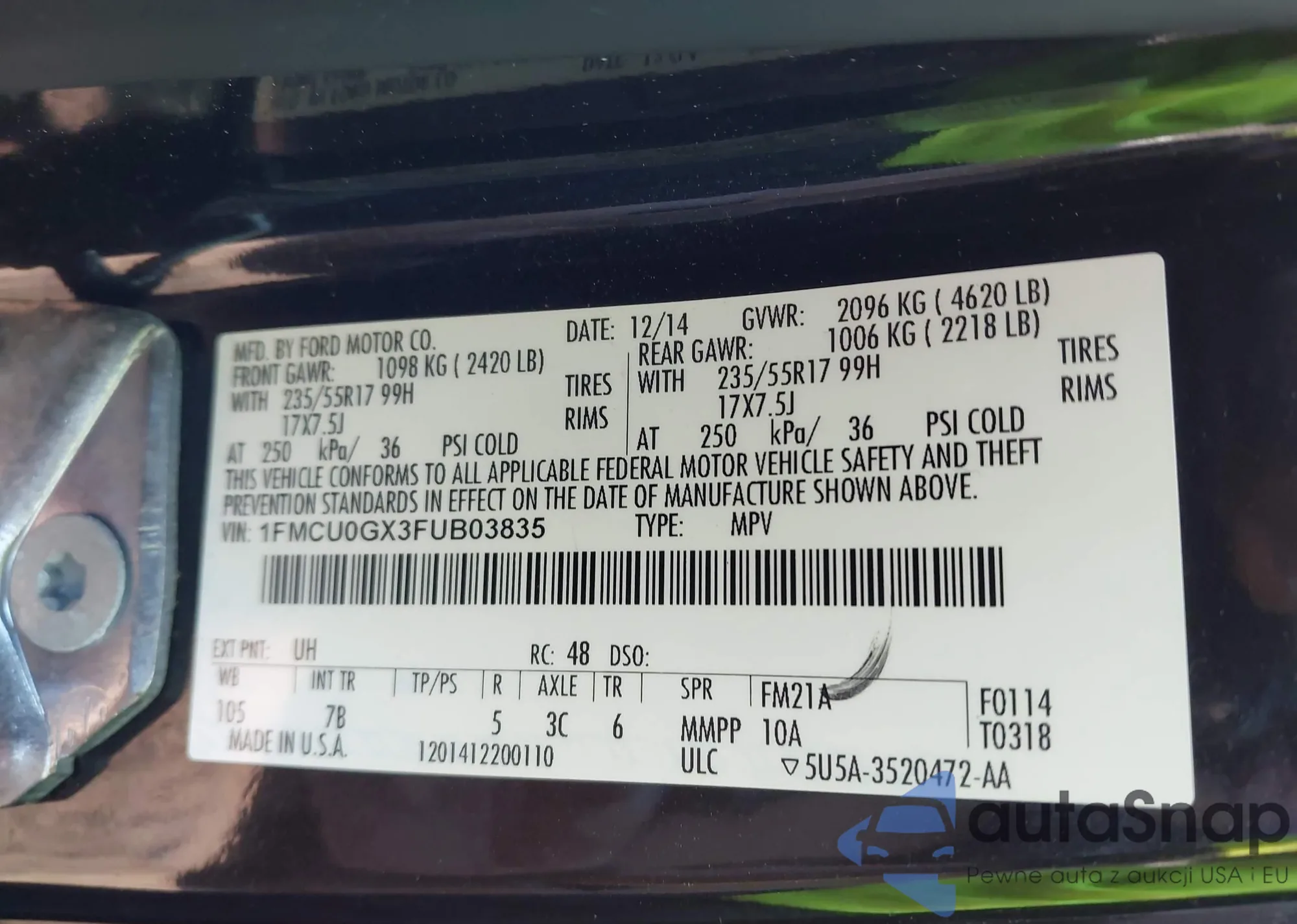 • VIN 3FA6P0LUXKR121888