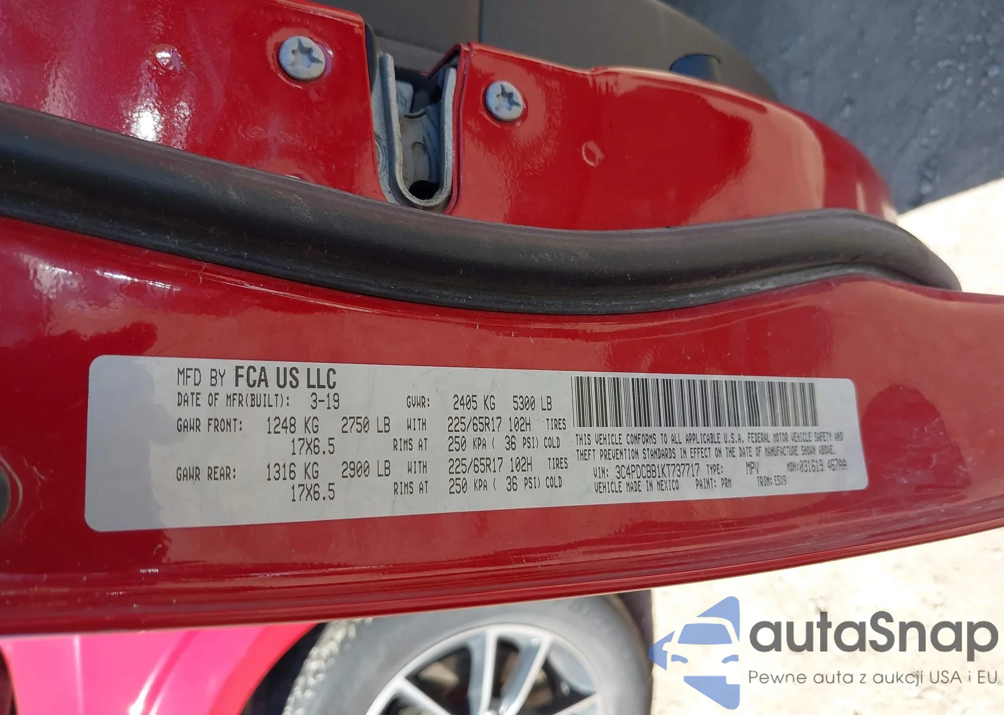 LOT: 43321880 VIN: 3C4PDCBB1KT737717