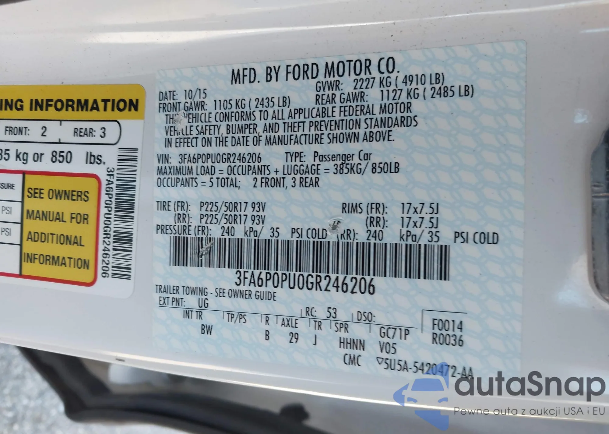 • VIN 3FA6P0PU0GR246206